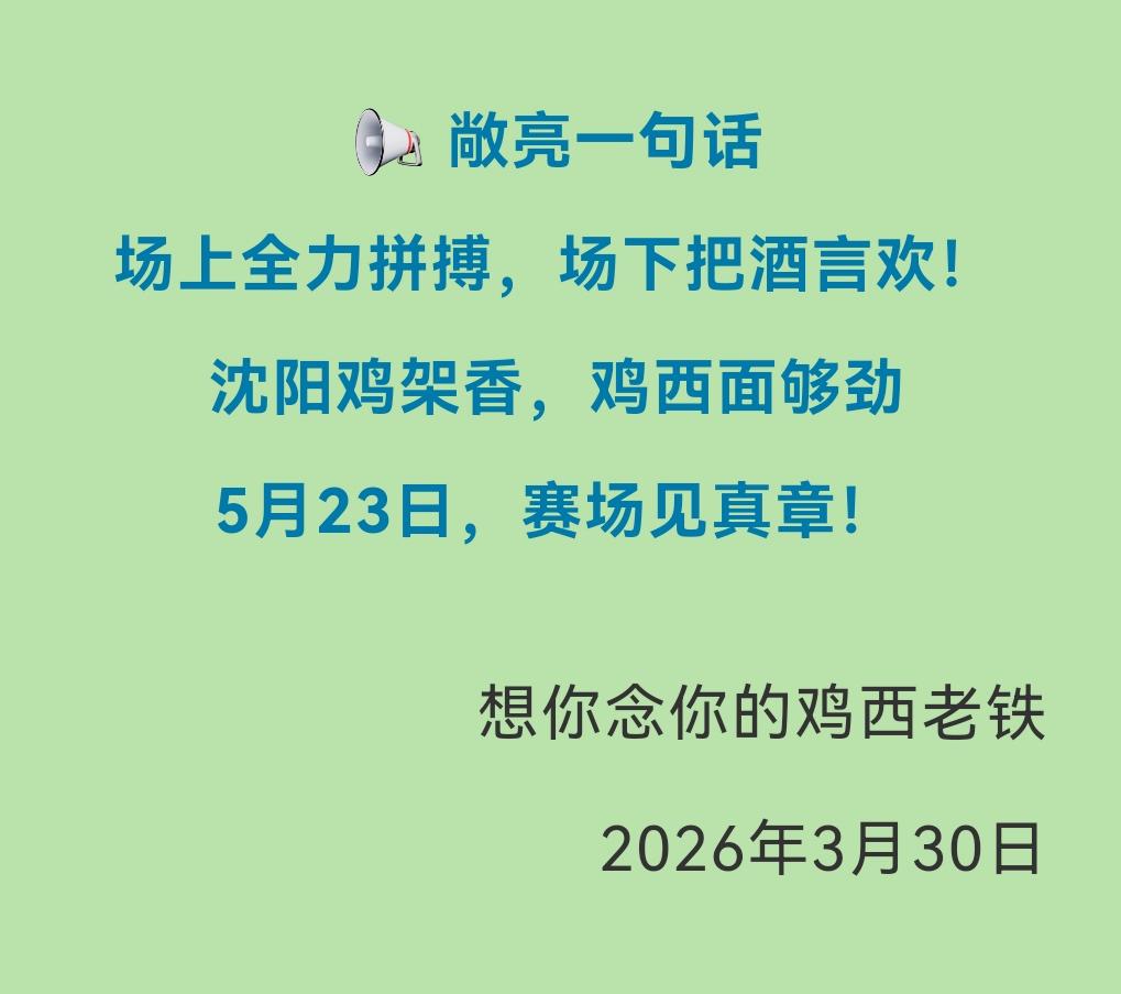 “首战对阵沈阳,缘分挡不住鸡西接招,绝不掉链子!敞亮一句话场上全力拼搏,场下把酒言欢!沈阳鸡架香,鸡西面够劲5月23日,赛场见真章!”