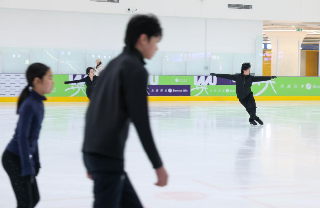 4月1日,滑冰爱好者在大靖冰上基地滑冰。新华社记者 颜麟蕴 摄