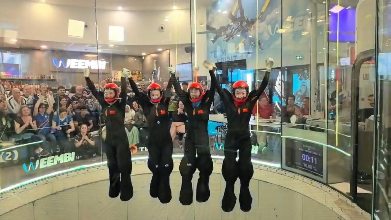 比赛中,队员们在垂直强气流中精准调整姿态,上演行云流水的“空中芭蕾”。面对法国、德国等劲旅,平均年龄17岁的青年队毫不怯场,发挥稳健;老将组合则以302分强势夺冠,领先东道主法国队19分,成功实现三连冠,女子二队斩获季军,双双登上领奖台。
