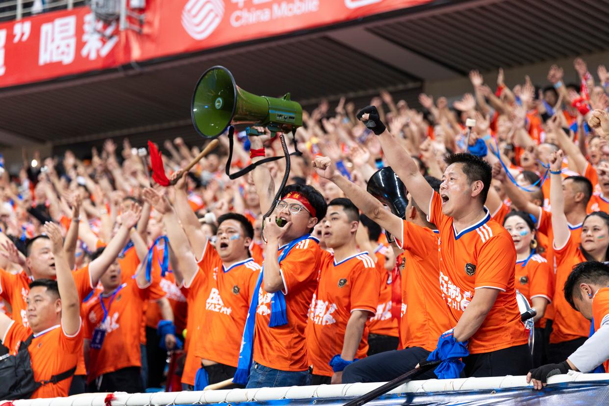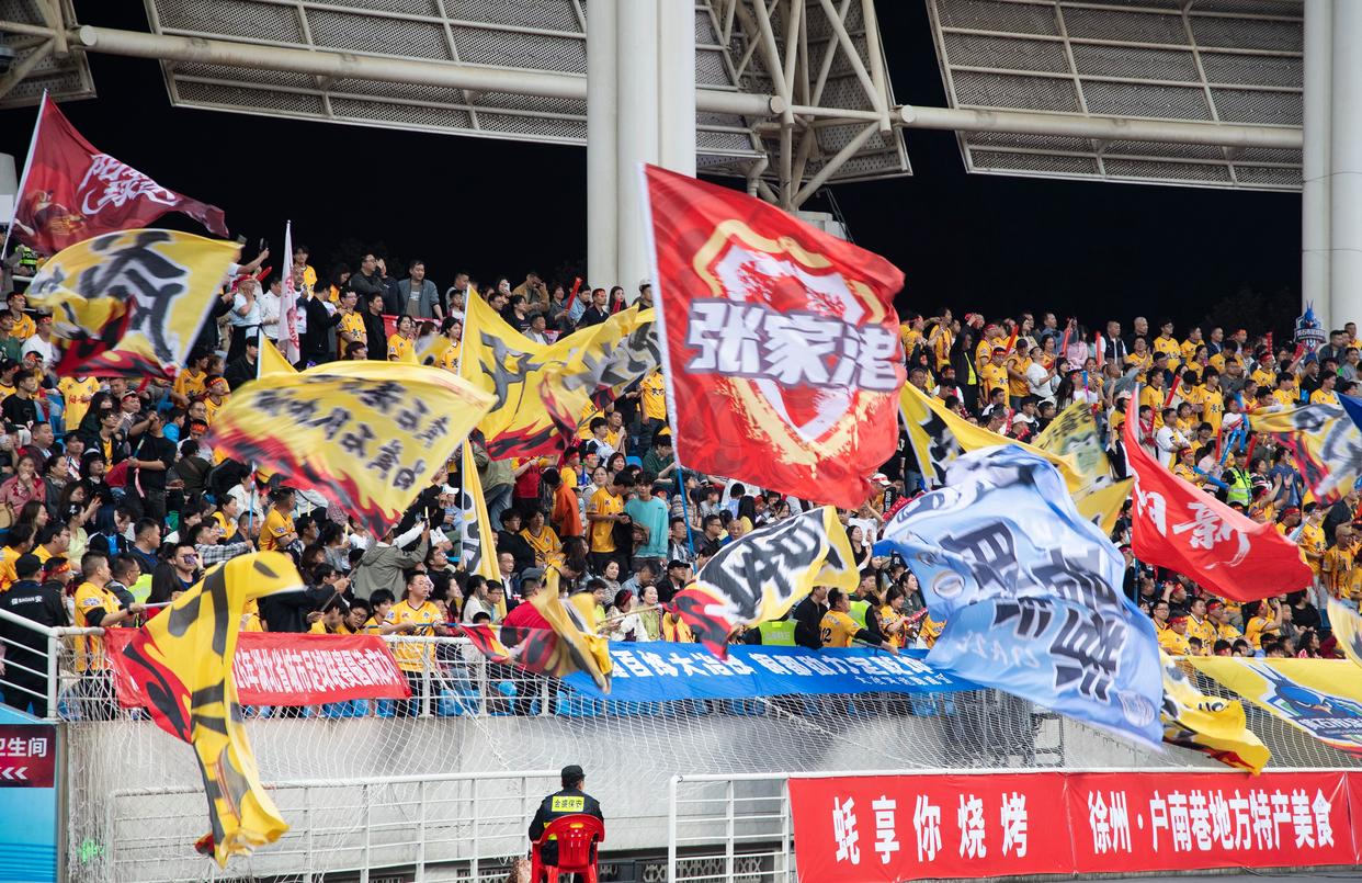 九江球迷在“楚超”赛场为黄石队加油。(组委会供图)黄石的江西邻居——九江