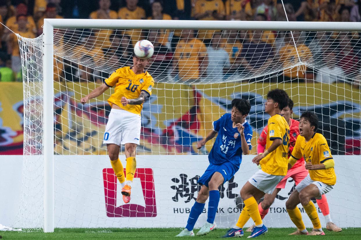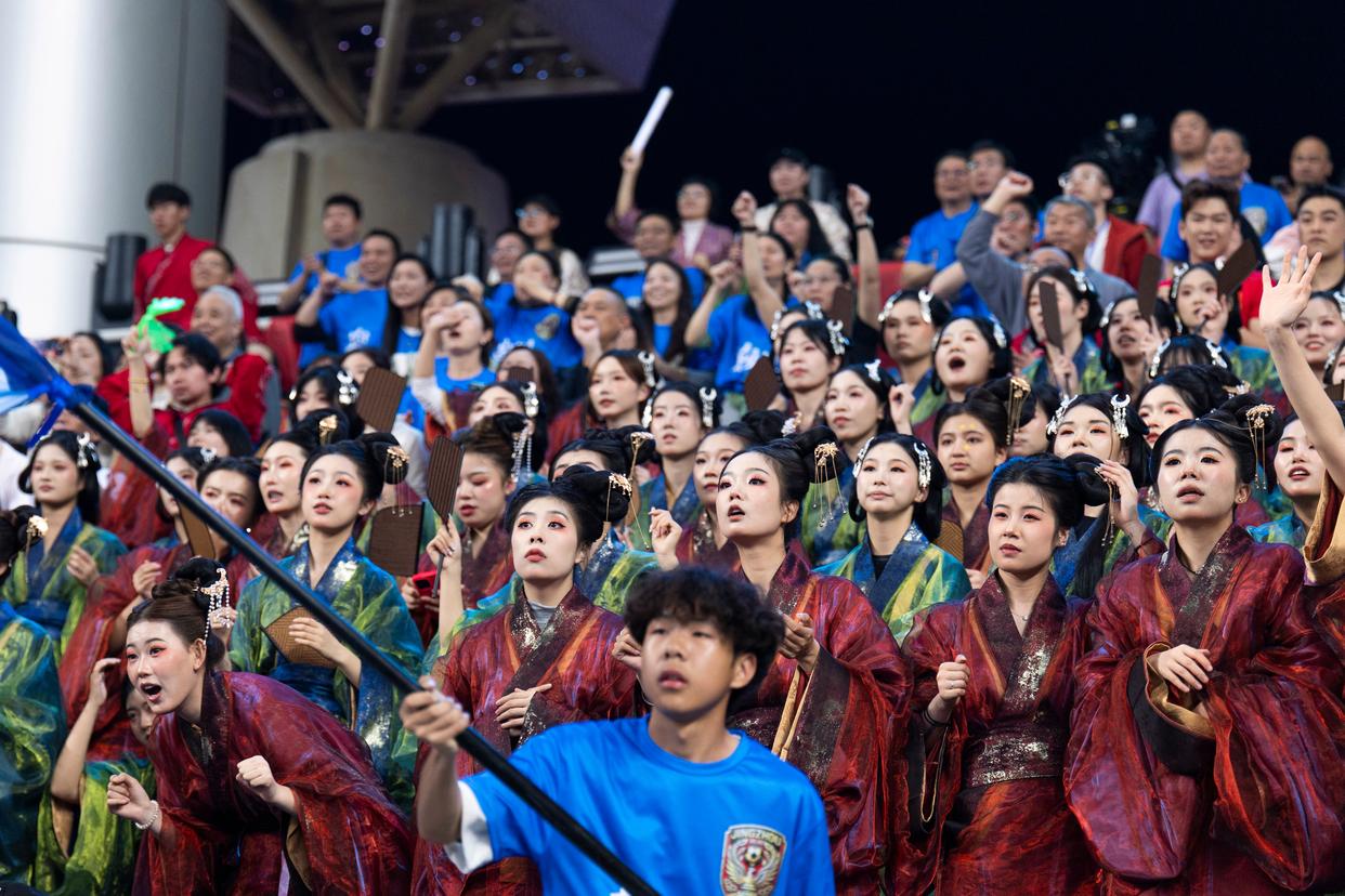身着战国袍的荆州队球迷在看台上为球队加油助威。新华社记者伍志尊 摄更远的地方