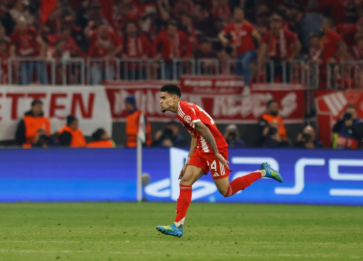 4月15日,拜仁慕尼黑队球员迪亚斯在进球后庆祝。新华社/路透