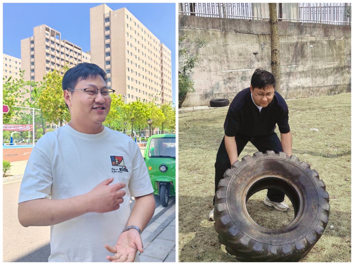 云南商务职业学院的老师和学生一起打篮球。95公斤的学生韩紫旭说