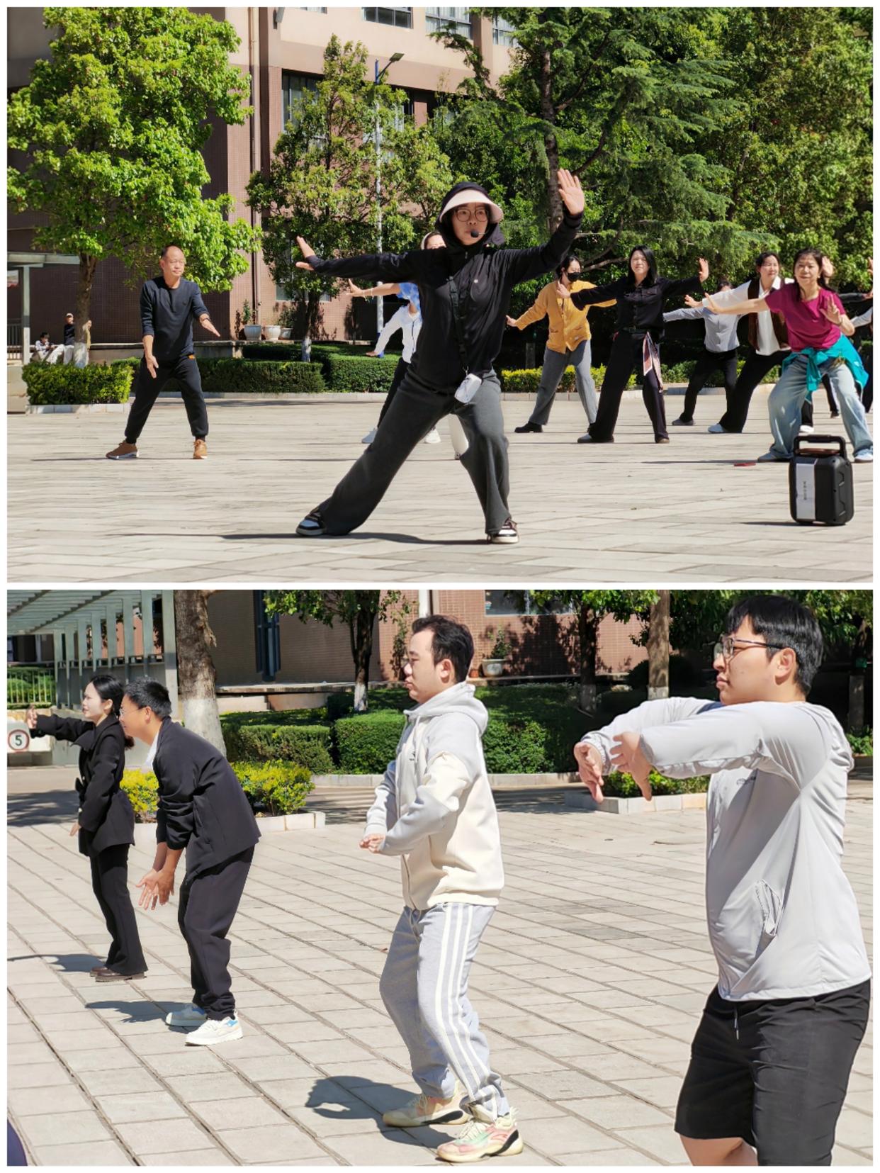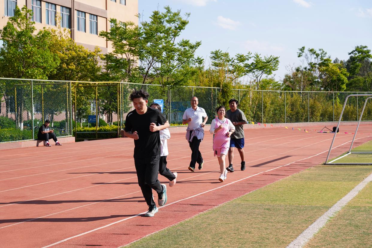 云南商务职业学院的老师和同学一起运动。当然,一场减重比赛