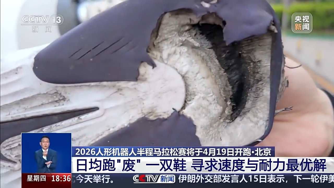 总台记者 沈立:现在我所在的就是位于北京市昌平区的一家人形机器人公司,可以看到,刚刚跑过的机器人以及我身旁的机器人正在为赛前做着最后的准备。为了能在半程马拉松前获得最佳的跑步数据,它们需要每天跑出一个“半马”的距离。每天跑完,基本上都会获得一双“伤痕累累”的机器人跑鞋,为了承载这个将近180斤的机器人重量,整个鞋基本上每天都要“废”一双。