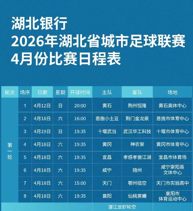 黄冈vs神农架(4月18日19:35,黄冈市体育中心)