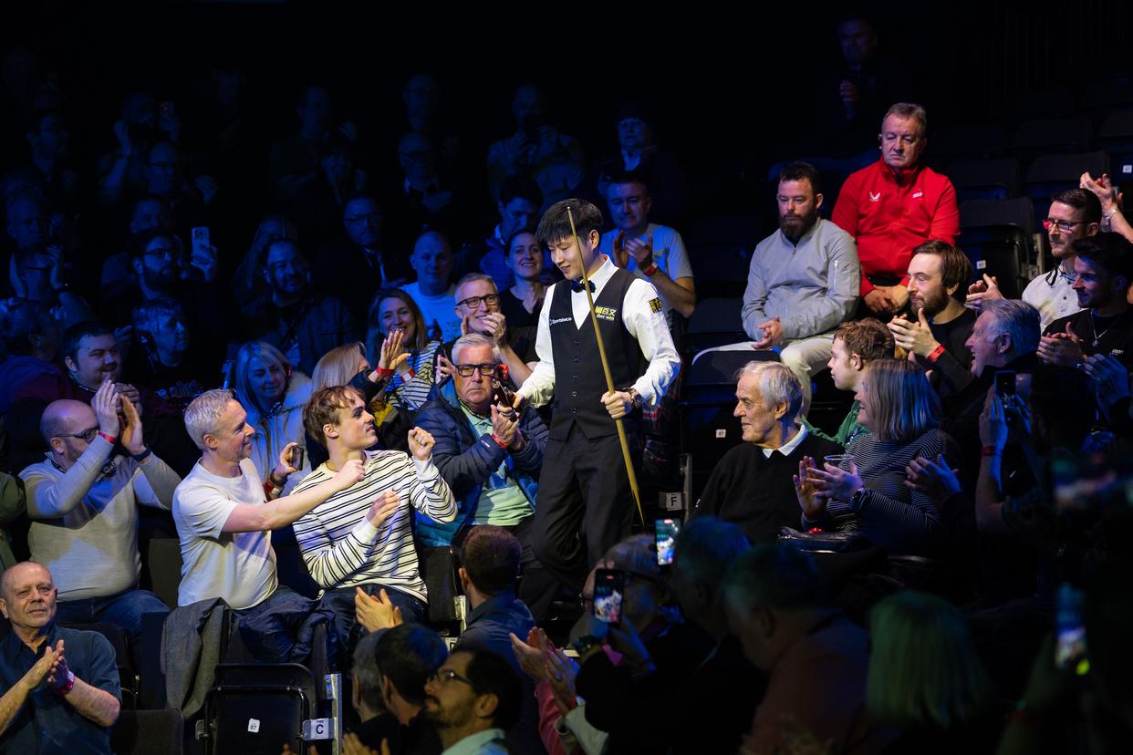4月5日,在英国曼彻斯特举行的2026斯诺克巡回锦标赛决赛中,中国选手赵心童10比3战胜英格兰选手特鲁姆普,获得冠军。新华社发(翟政摄)16日签表出炉