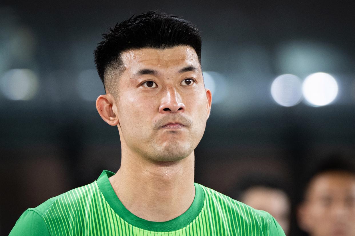 4月17日,成都蓉城队守门员刘殿座在入场仪式上。新华社记者 肖艺九 摄