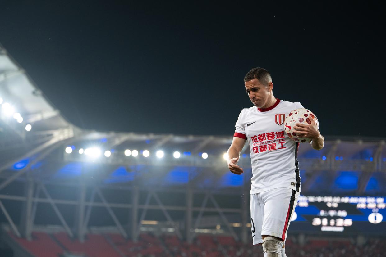 4月17日,成都蓉城队球员罗慕洛在比赛中准备发角球。新华社记者 肖艺九 摄