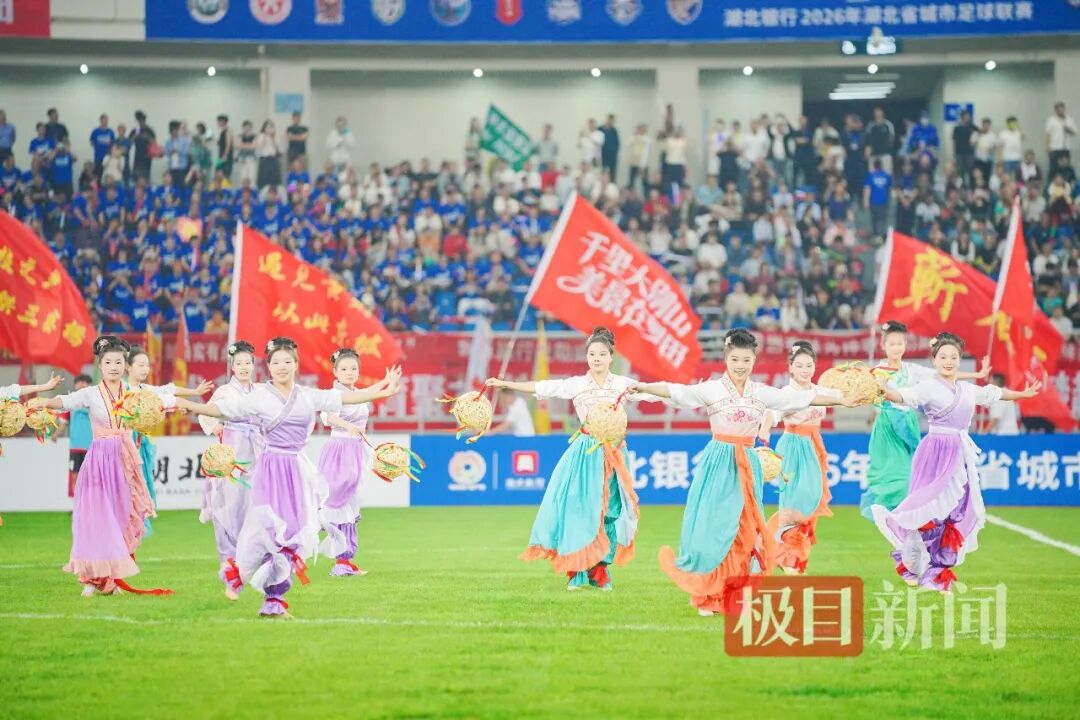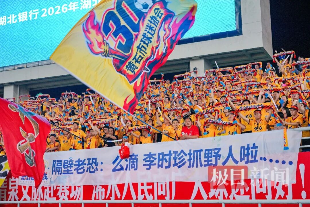 18日19时许,可以容纳2万人的黄冈市体育中心座无虚席,现场万人同唱《八月桂花遍地开》,引爆全场热度。黄冈市艺术学校组织了130余人的拉拉队,成为看台上最亮丽的风景线。