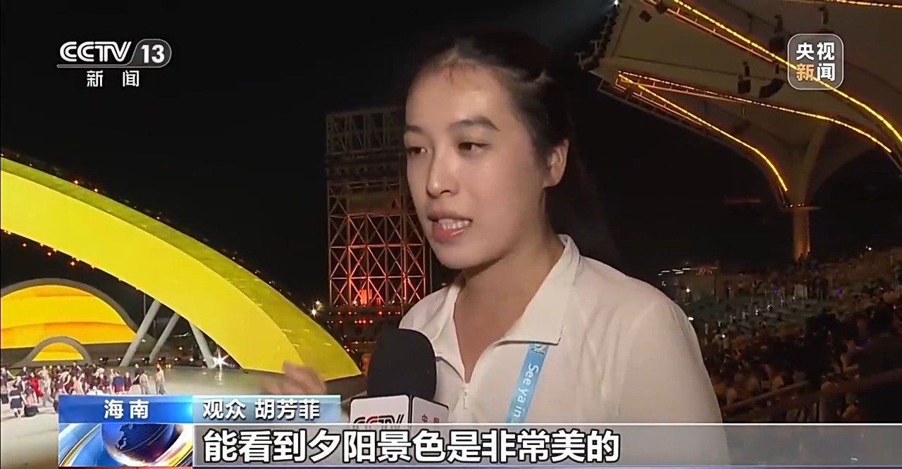 观众 胡芳菲:开幕式的场地就在海边,我们到的时候太阳刚刚落山,能看到夕阳景色是非常美的,非常震撼,非常壮观。