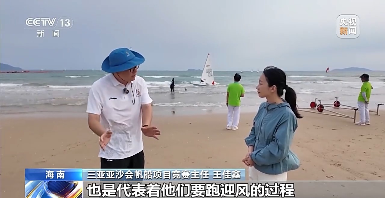 三亚亚沙会帆船项目竞赛主任 王佳鑫:绕过的这些标,也代表着他们要跑迎风的过程,也要跑顺风的过程,也要跑横风的过程。经过这个综合性考验。在海上他们需要判断,哪边的风好、风从哪里来、涌浪是什么样的,我如何才能跑出最快的速度,因为它是一个速度的比拼。这些选手需要具备气象、流体力学和空气动力学的理论知识和实践经验。