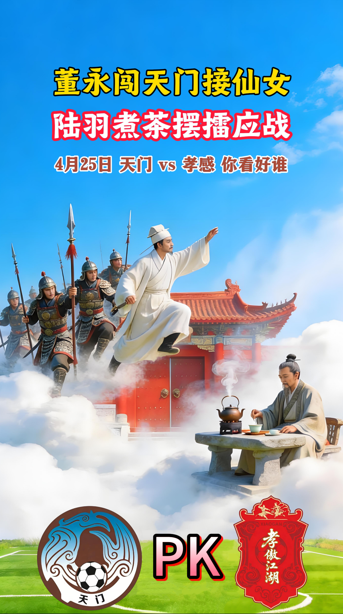 孝感,因汉代孝子董永卖身葬父、孝行感天的典故闻名,董永与七仙女的爱情传说更是家喻户晓——昔日玉帝无情,将七仙女强行带回天庭,让二人天人永隔;如今,借楚超赛事之机,“董永”携孝感队一众将士“闯天门”,只为圆“接我爱妻”的心愿,也为这场双城对决注入了浪漫又热血的底色。