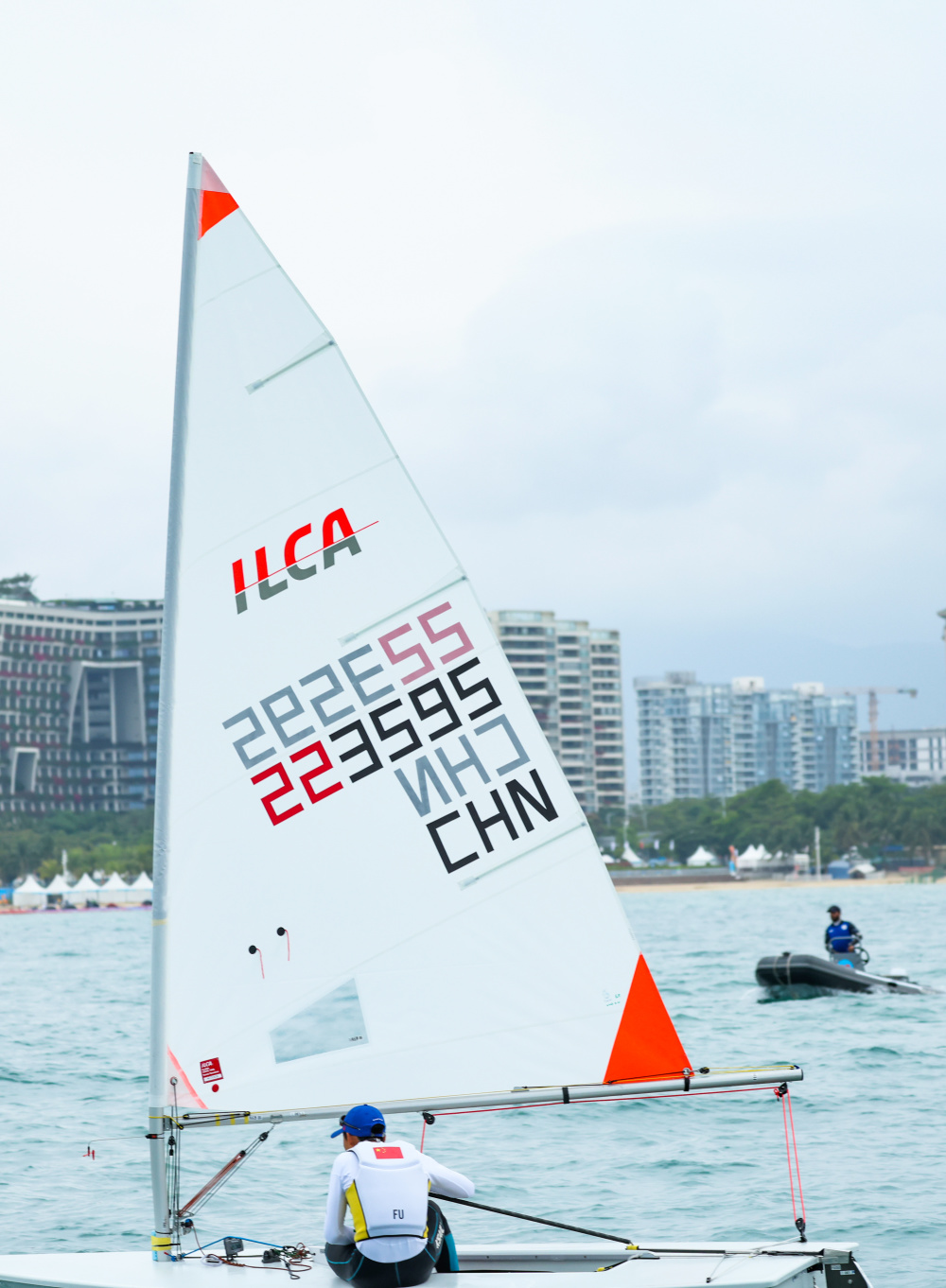 4月24日,中国选手傅冯子熠在男子爱尔卡4级帆船比赛中。新华社记者 张帆 摄