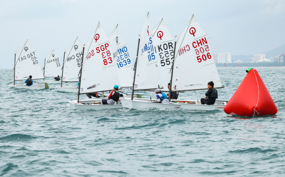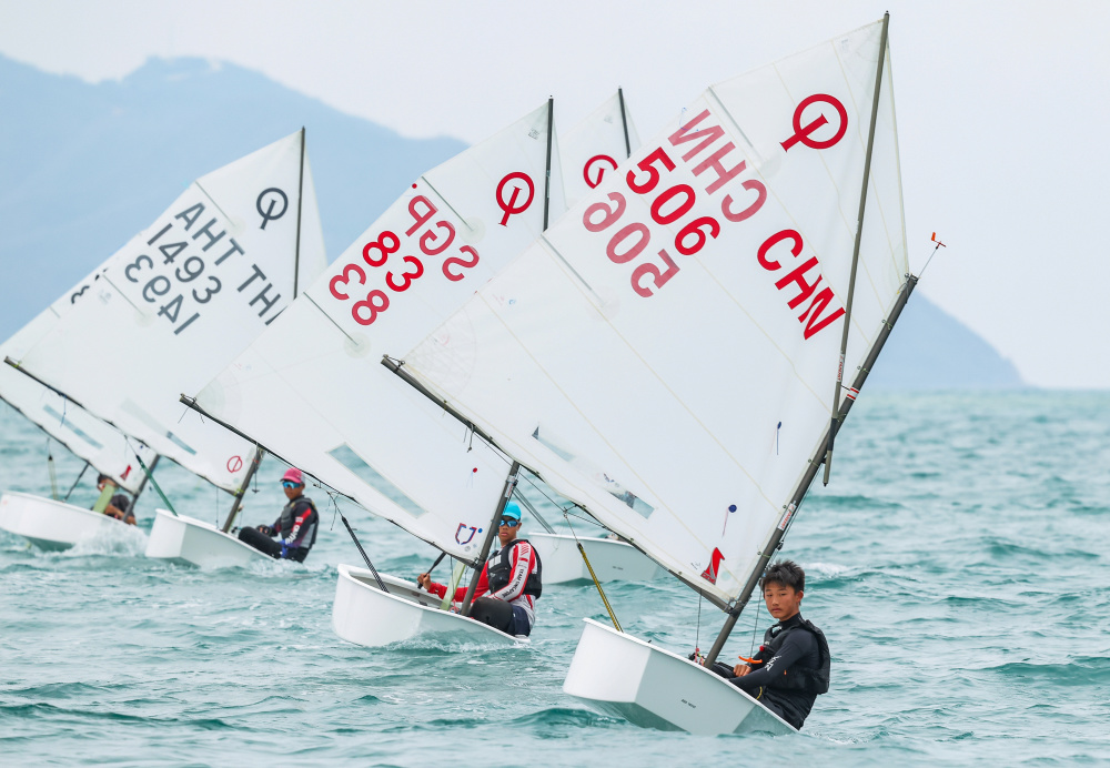 4月24日,第六届亚洲沙滩运动会帆船男子OP级比赛在海南三亚举行。