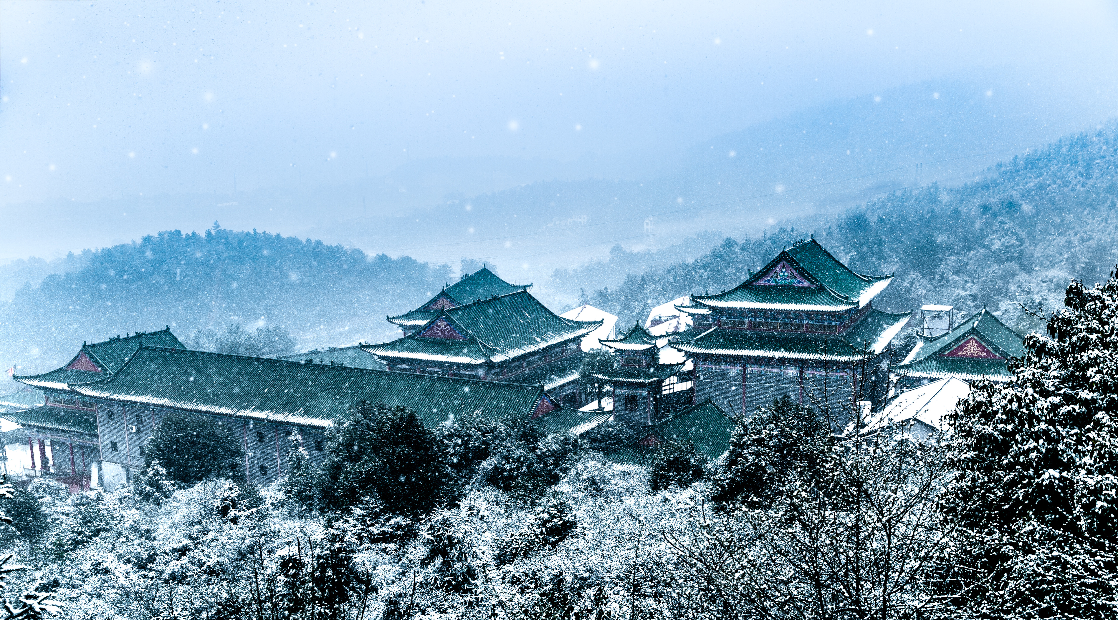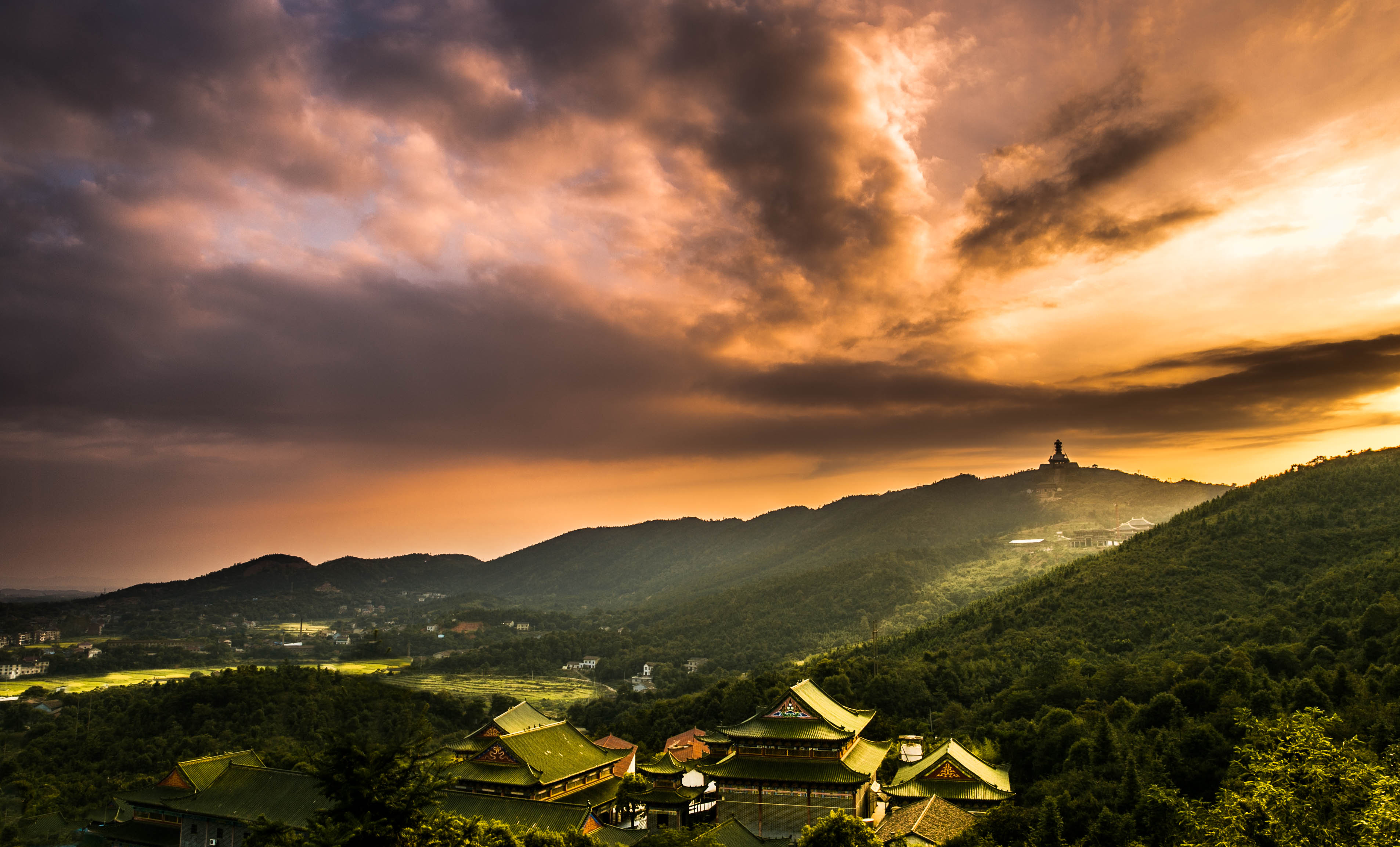 傍晚,落日的余晖从山巅的佛像,落到寺庙的屋檐,然后掠过城市的高楼,山的一天结束了,城市的一天却热闹依旧。大山无言,默默守护着这座城市。