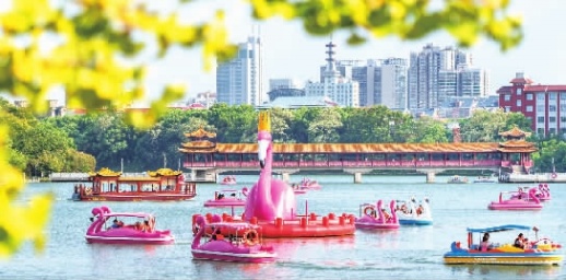 9月3日,不少市民和家人朋友一起在湖南烈士公园年嘉湖休闲泛舟,乐享周末大好时光。近期,长沙炎热的酷暑已渐消退,连日的秋高气爽让人感觉十分舒适。