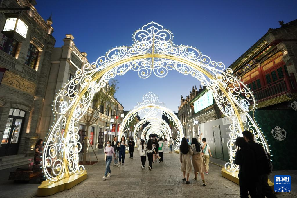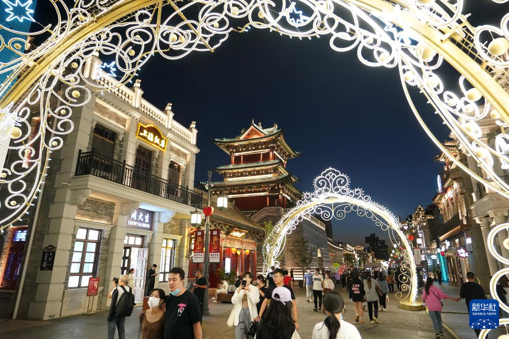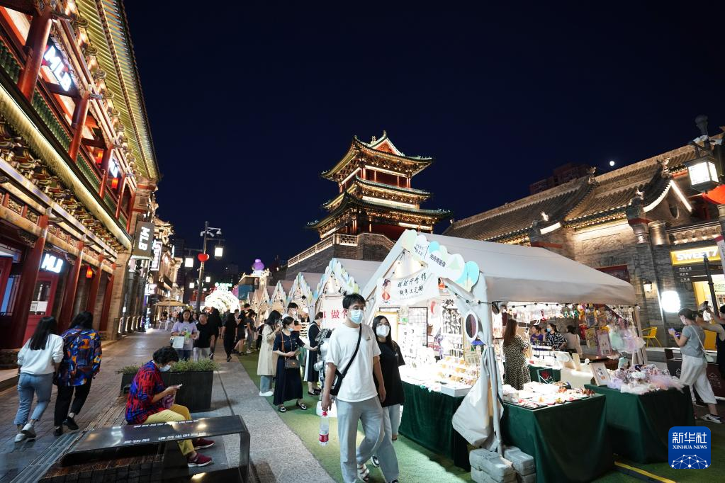 夜幕降临,山西省太原市钟楼街灯火璀璨,街区里的特色小吃、传统手工艺和文创产品等吸引游人驻足。日前,太原市钟楼街入选第二批国家级夜间文化和旅游消费集聚区名单。