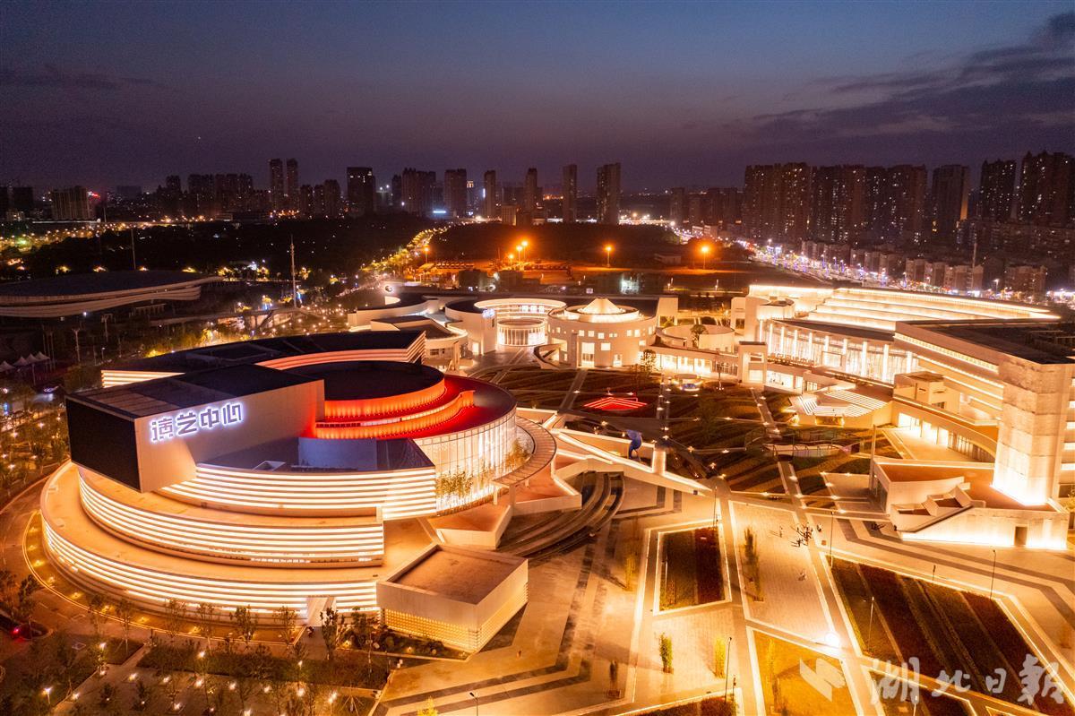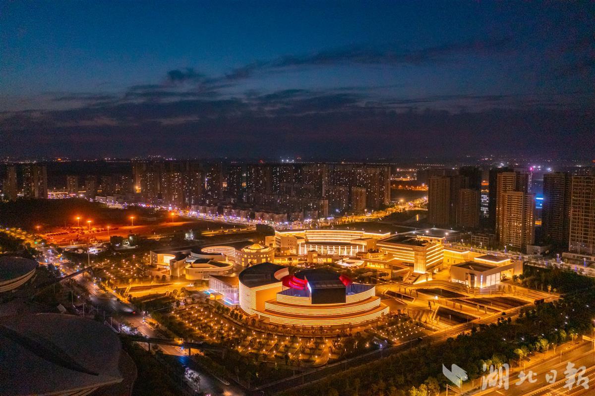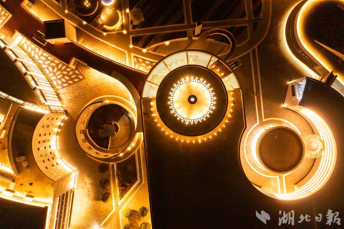 2022年9月6日,空中俯瞰亮灯的武汉市东西湖区文化中心灯光璀璨,流光溢彩。当日,东西湖区文化中心该中心正在启动外立面灯光调试。据介绍,以“城市之眼、文化之窗”高标准建设打造的东西湖文化中心,是集演艺中心、文化馆、档案服务中心、市民阅读中心、文化创意产业中心、博物馆科技馆等为一体的多场馆建筑群,本月底将于市民见面。