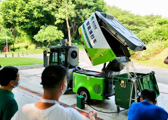 9月15日,深圳园博园一位特殊的“清洁工人”上岗。它是自动驾驶环卫公司星火科技推出最新款智能清扫车,可以24小时不间断连续作业。此前,该智能清扫车在龙华区水围新村上路试运行,在无GPS信号或弱GPS信号的地方,依然能够灵巧地进行自动驾驶、避障绕障,同时完成洒水清扫等系列操作。