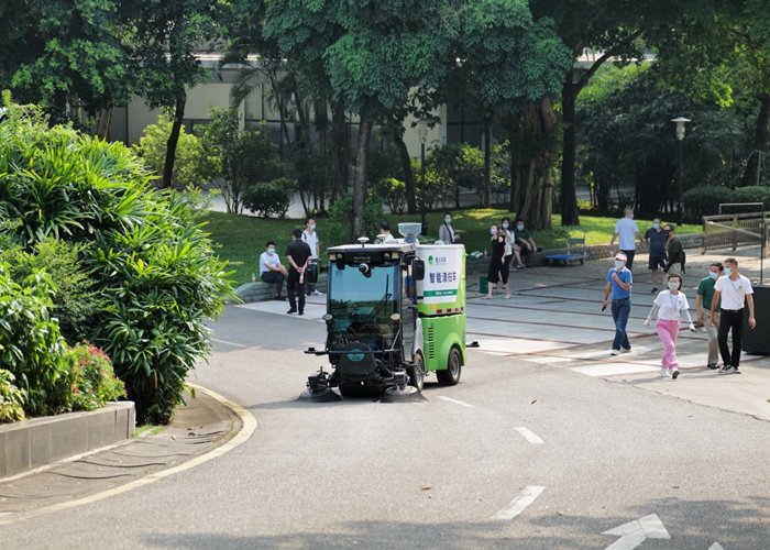 星火科技技术人员现场向市民介绍智能清扫车隐藏的各项“黑科技”。一是行驶中机动灵活,除了广泛适用于城市道路专业环卫清洁、园林景观美化、人行道保洁、厂务管理等各种工况,还可围绕单棵树进行360°清扫作业,在城中村、公园、学校、机场及码头复杂楼栋环境下,也能有效接通信号,实现全智能化运营的技术能力。二是高效环保,可以快速清扫落叶、石子、沙尘、白色垃圾等,在满负荷状态下每个小时可以清理大概1万平米的路面,是传统清洁面积的10倍,能够和局部人工清扫形成互补,不仅提高了清洁效率,降低了人工成本,还减轻了环卫工人的维护作业量。