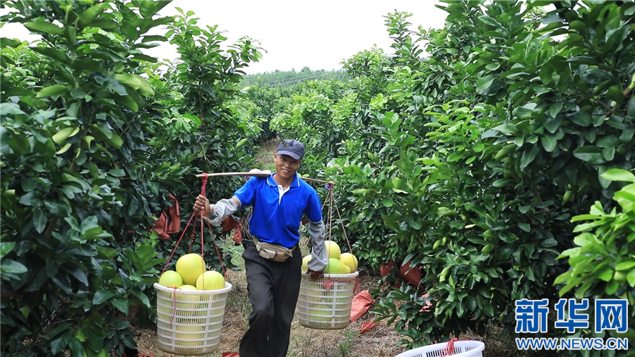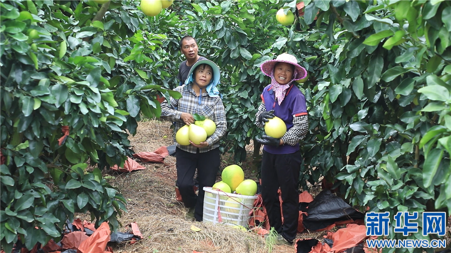 果农正在采摘柚子。新华网发蒙在旺摄