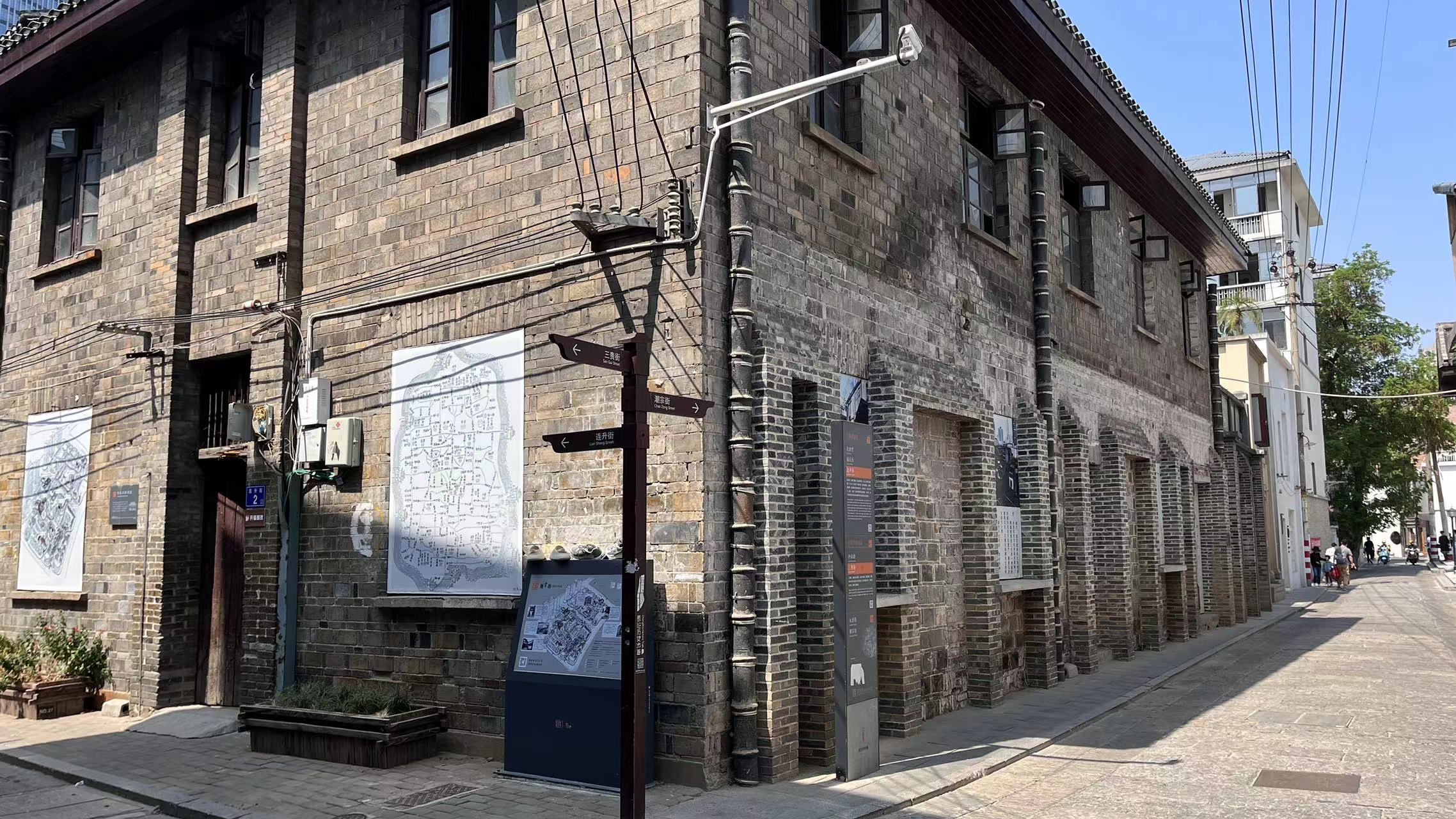 走进左侧的梓园巷,更像是走进了一个历史建筑的博物馆,楠木厅、民国旅社、九如里公馆等遗迹建筑藏于其中,绿色的植物沿着墙角攀援而上,走在这里宛如置身于纷乱动荡的民国时代。