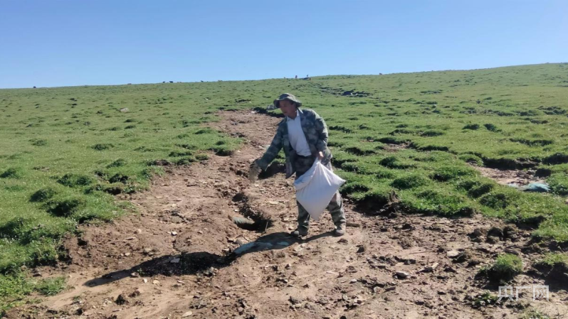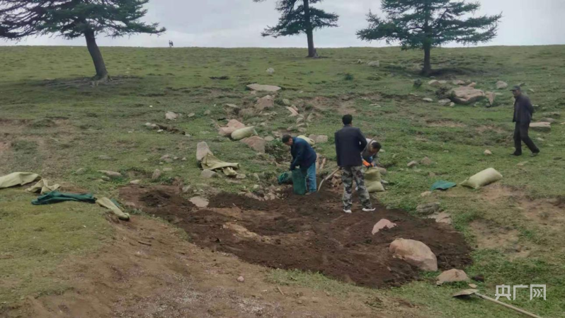 在侵蚀沟播种草籽(央广网发高桥洼林场供图)
