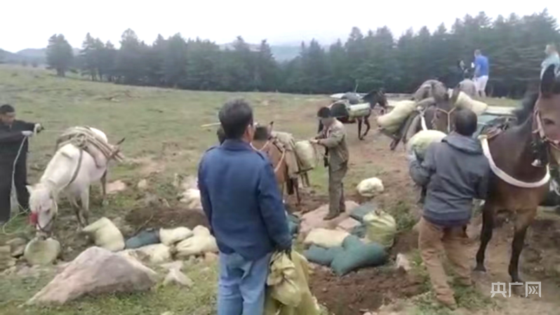 骡马驮运来客土对侵蚀沟进行填充(央广网发高桥洼林场供图)