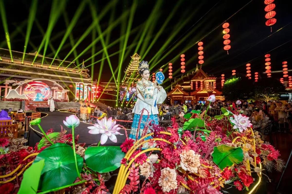荆街盛装亮相,有6000多盏风格各异的灯笼点亮整个街区,是一条集美食、休闲、夜市、潮玩、民宿于一体的仿古商业街区。国庆节期间,街区还有花车巡游、民俗演艺、汉服秀、民间杂技等活动轮番上演。