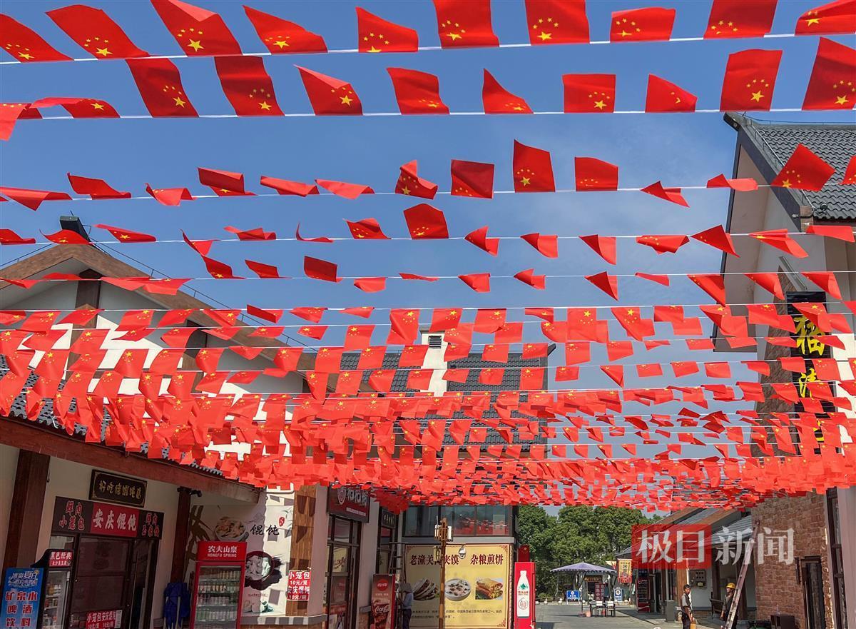 一面面鲜红的国旗悬挂在桃源小镇景区内,一抹抹鲜艳“中国红”给即将到来的国庆节增添了浓浓的喜庆氛围,形成了一道亮丽的风景线。