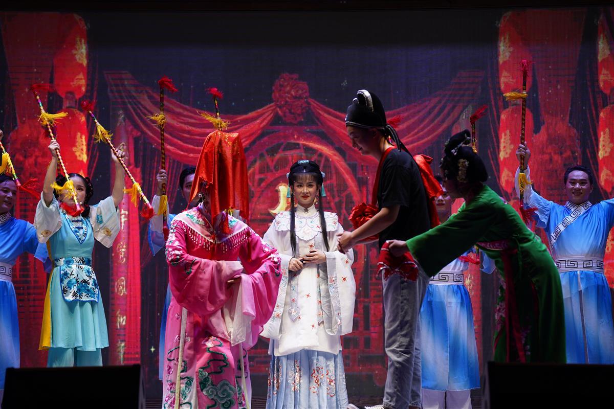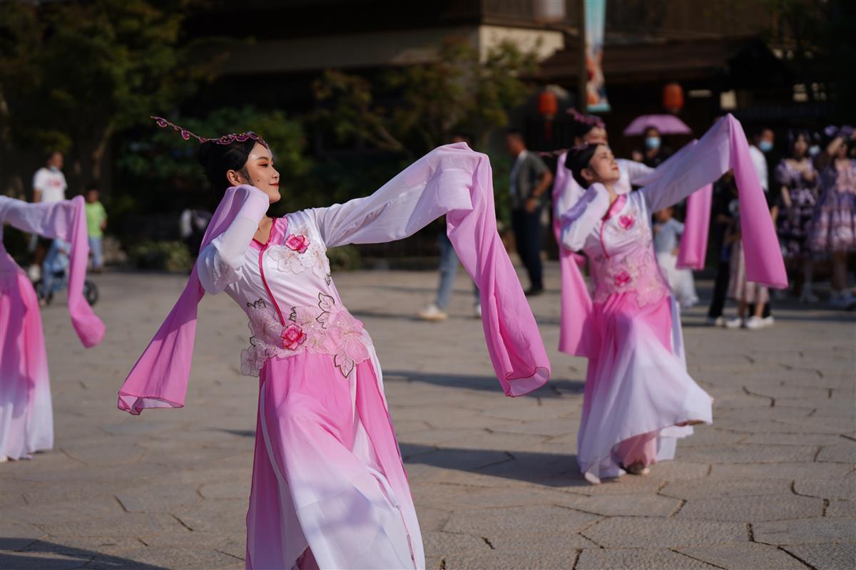 极目新闻记者看到,国庆期间,问梅村联合湖北省戏剧院主办“黄梅戏、折子戏专场”,邀请众多大咖驻场,包括中国戏剧“梅花奖”获得者程丞、湖北戏剧“牡丹花”奖获得者石静、国家级演员王慧君、吴进良,为游客奉上《天仙配》《打猪草》《牛郎织女》《女驸马》等经典剧目,让游客近距离感受中华传统文化魅力。