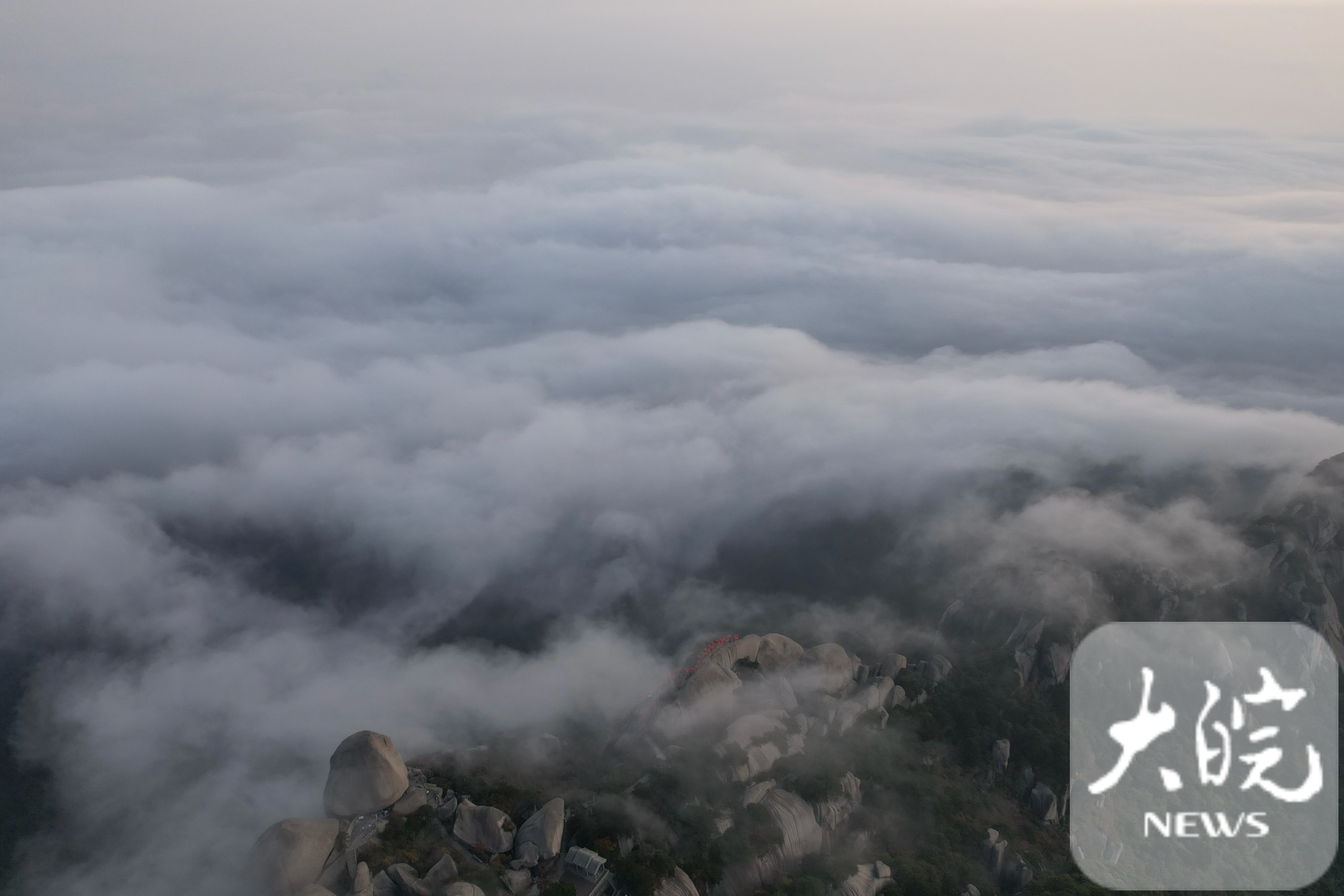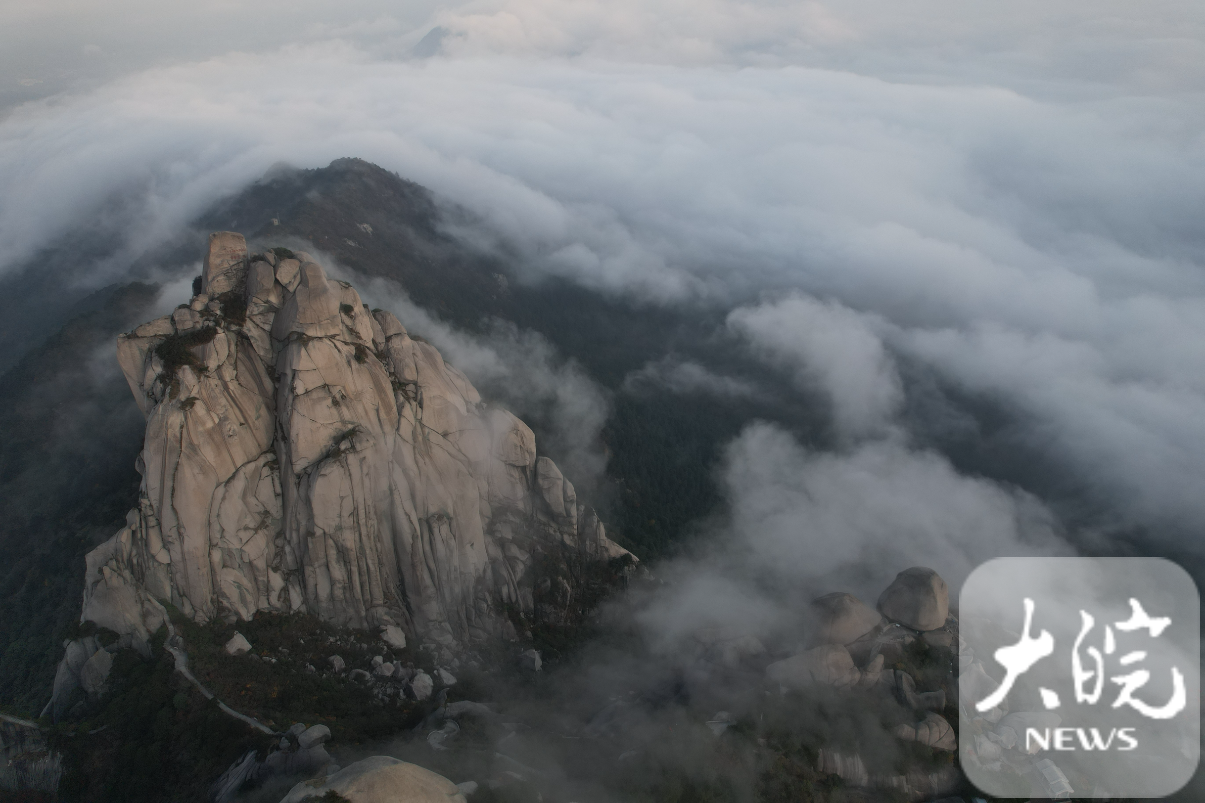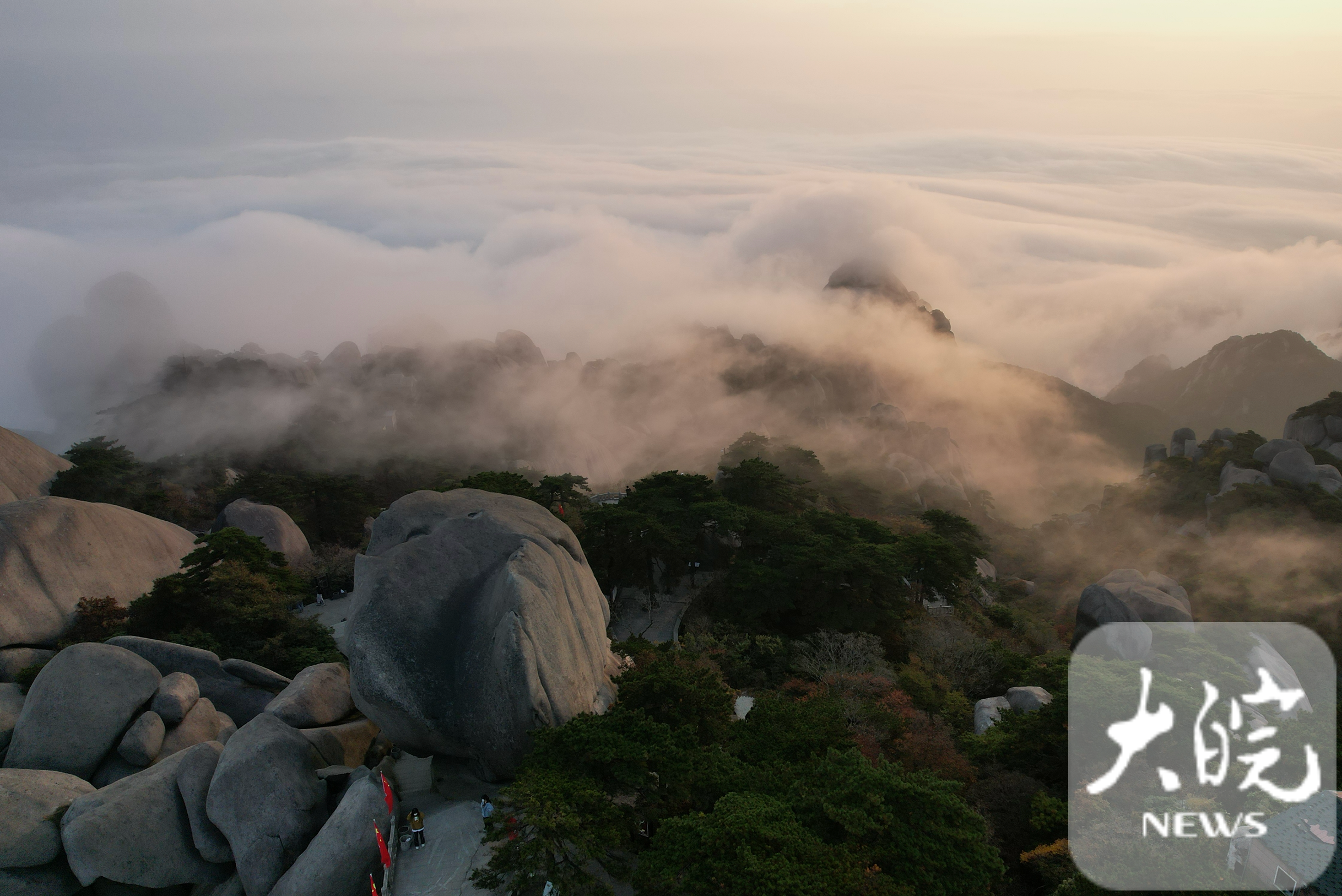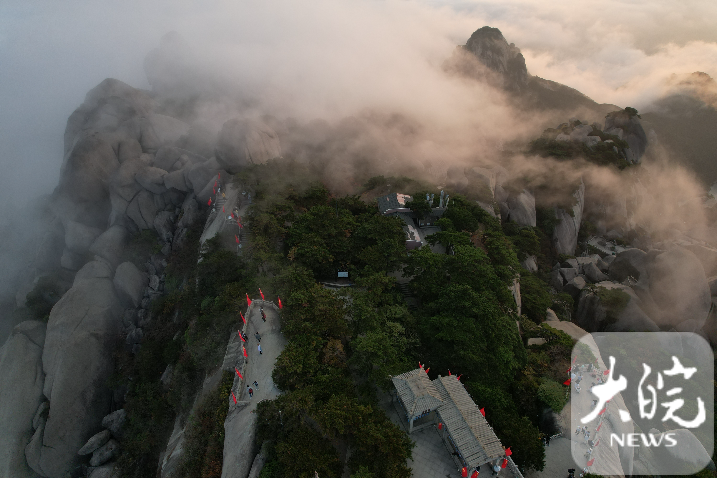 10月4日,安徽天柱山天气晴好。清晨6点多,天柱山出现云海。大皖新闻记者在山顶用航拍镜头记录下这一美景。