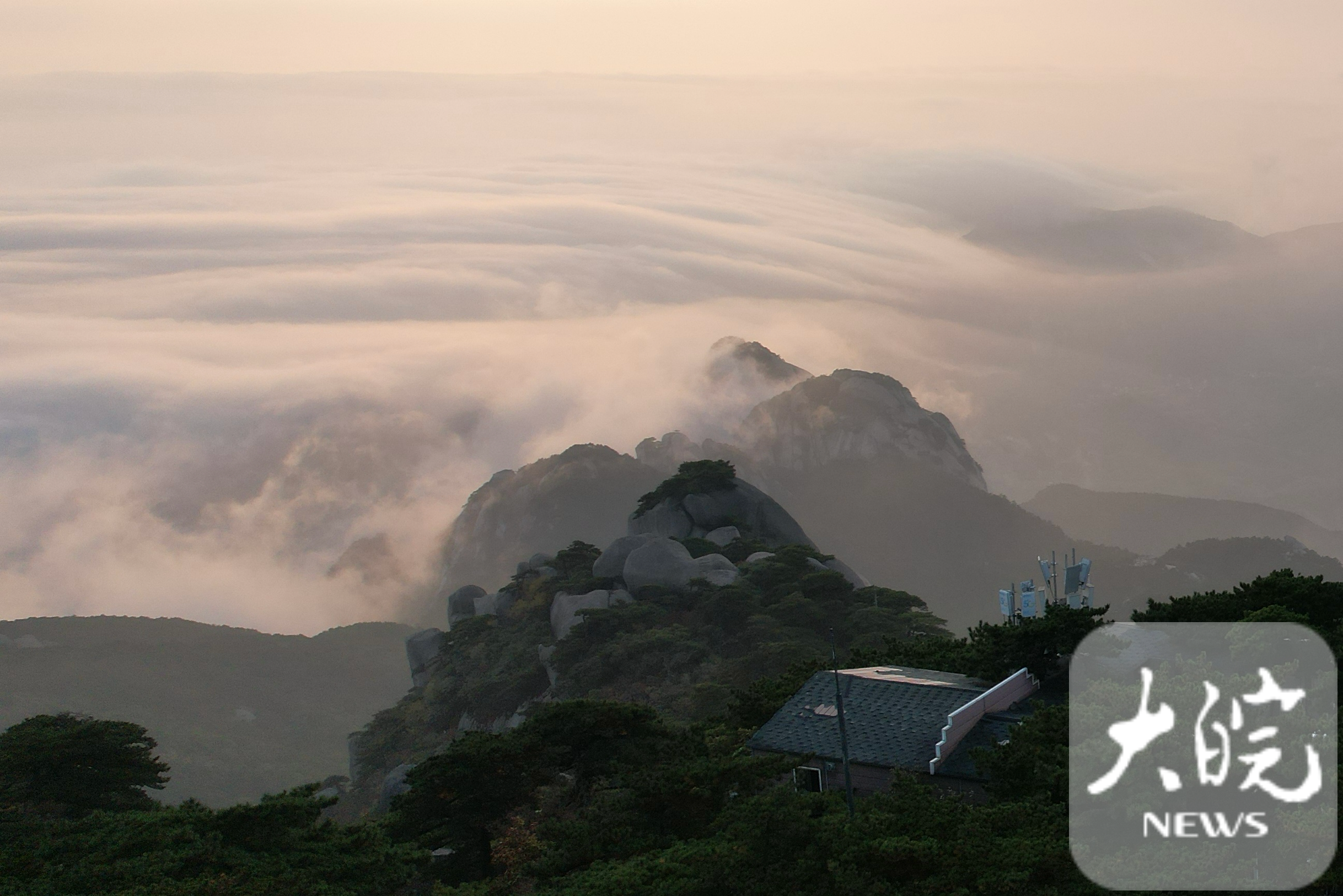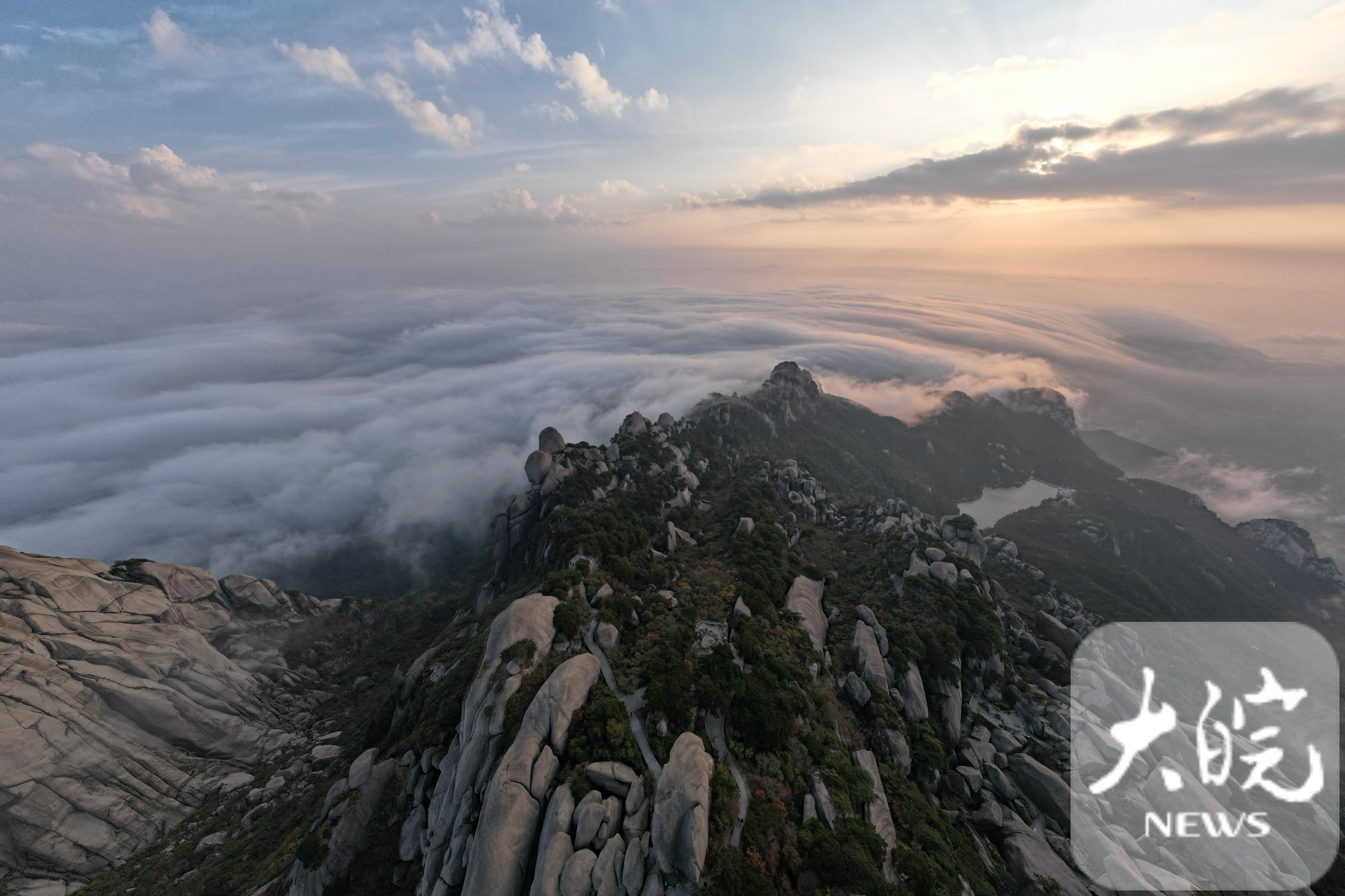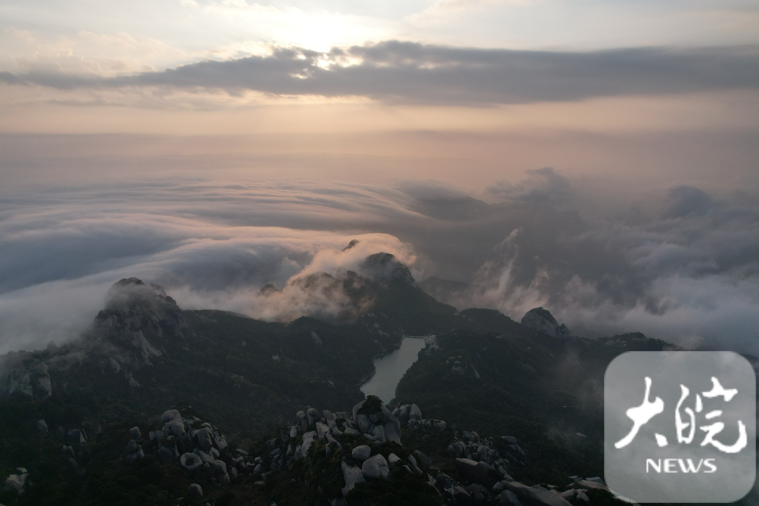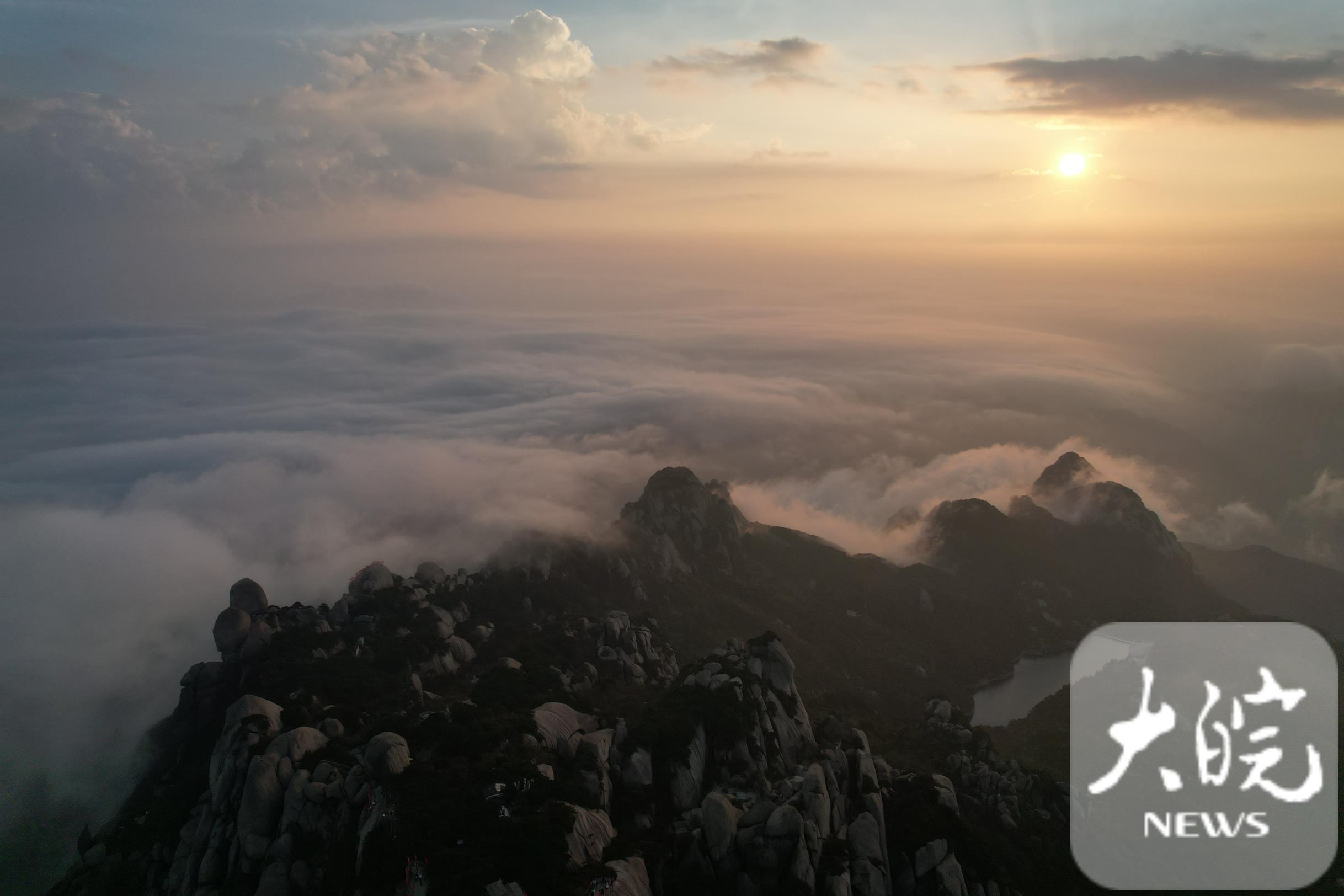 10月4日,安徽天柱山天气晴好。清晨6点多,天柱山出现云海。大皖新闻记者在山顶用航拍镜头记录下这一美景。