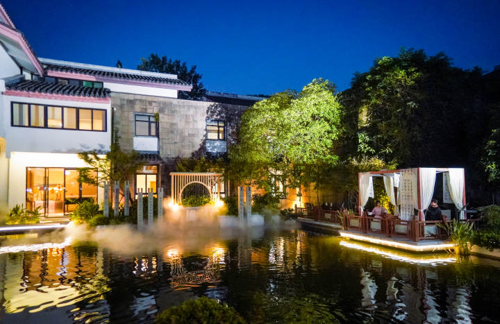 这个国庆长假,金溪山庄推出宋韵沉浸游新玩法,含穿宋制服装、画团扇、学点茶、品宋酒、乘游船等多项体验。新玩法为“老”酒店注入夜游活力,据统计,酒店每晚6点~8点客流量能达到每小时200人。