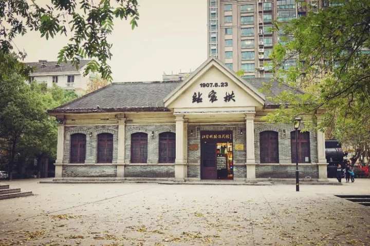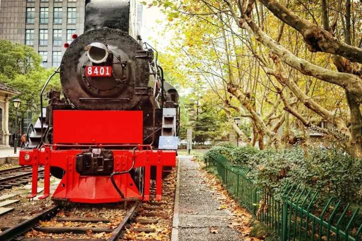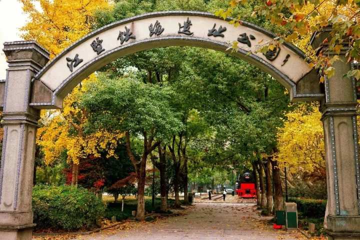 江墅铁路是浙江历史上第一条铁路,如今江墅铁路遗址公园成了一道城市深处的时光线。公园内有两段平行的的铁轨,火车头在铁轨上安静地趴着,边上是依据资料还原的钟楼、候车室。