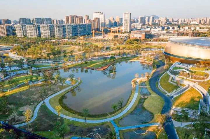 由“一场一馆一广场两中心”组成,是杭州主城区最大的新建亚运场馆群,也是浙江省首座集体育馆、运动场、公园、商业配套于一体的综合性城市体育公园。