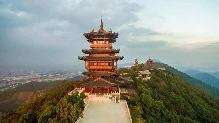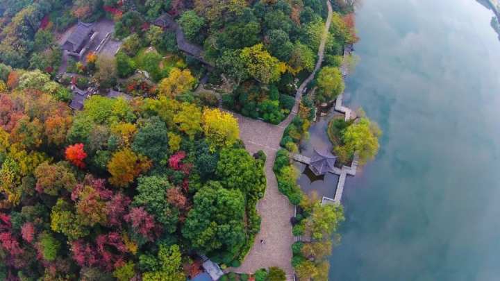 来到山顶的望宸阁,可以在阁顶一览杭城秋景,秋天的多彩画卷在公园绚烂展开。