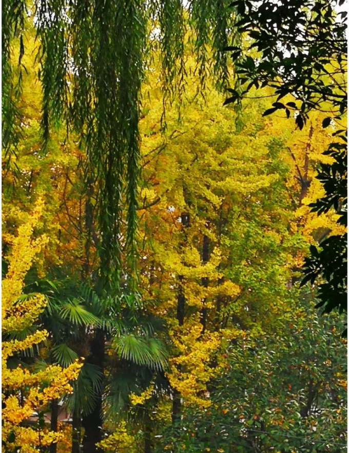 秋天的朝晖公园,叠翠流金,色彩斑斓。