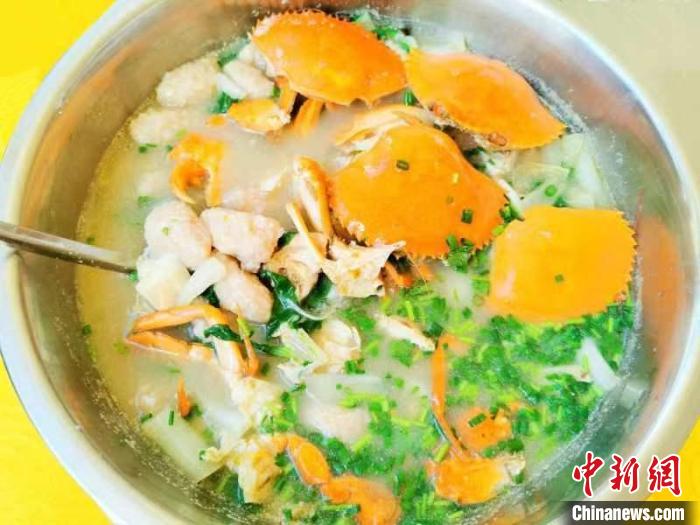 台山市冲蒌镇华东楼餐厅推出的水蟹海鲜芋头糍水,鲜甜诱人李晓春摄