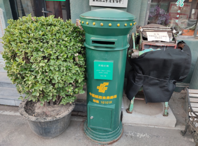 在距离不远的铁树斜街,游客小骆和朋友发现了一个新奇玩意“未来邮筒”。原来,这是旁边一家邮局推出的服务,游客可以把信寄给未来。
