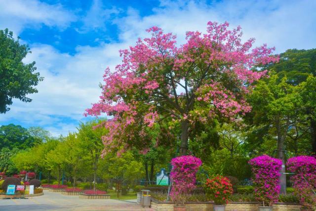 在秋日的佛山,除了簕杜鹃和粉黛乱子草,还有异木棉、向日葵、硫华菊、狗尾巴草等各种花儿带着斑斓的色彩,盛装出席。