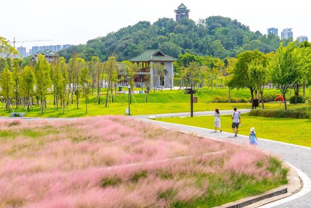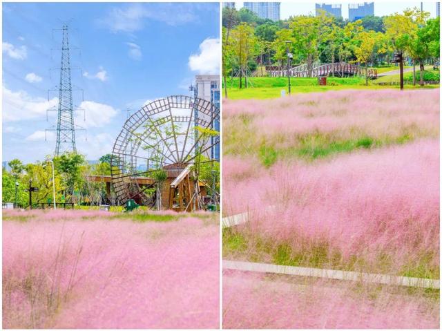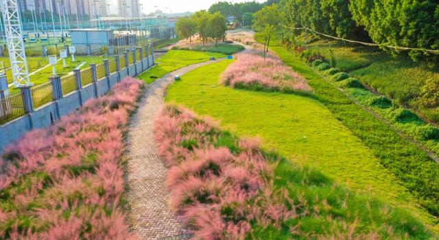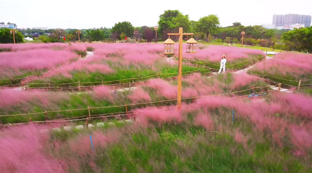 禅城王借岗森林公园,2万平方米的粉色花海如梦如幻。图/禅城城管