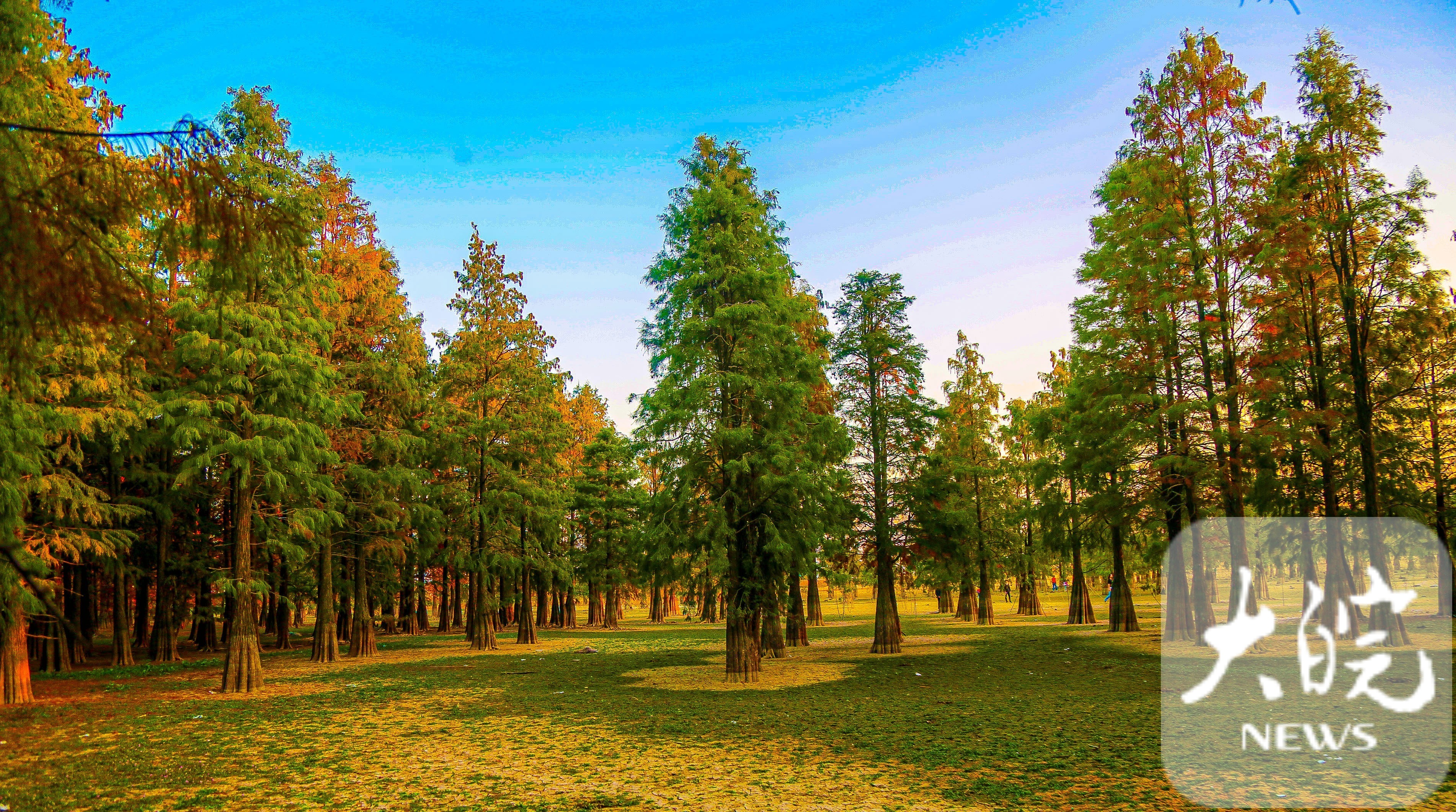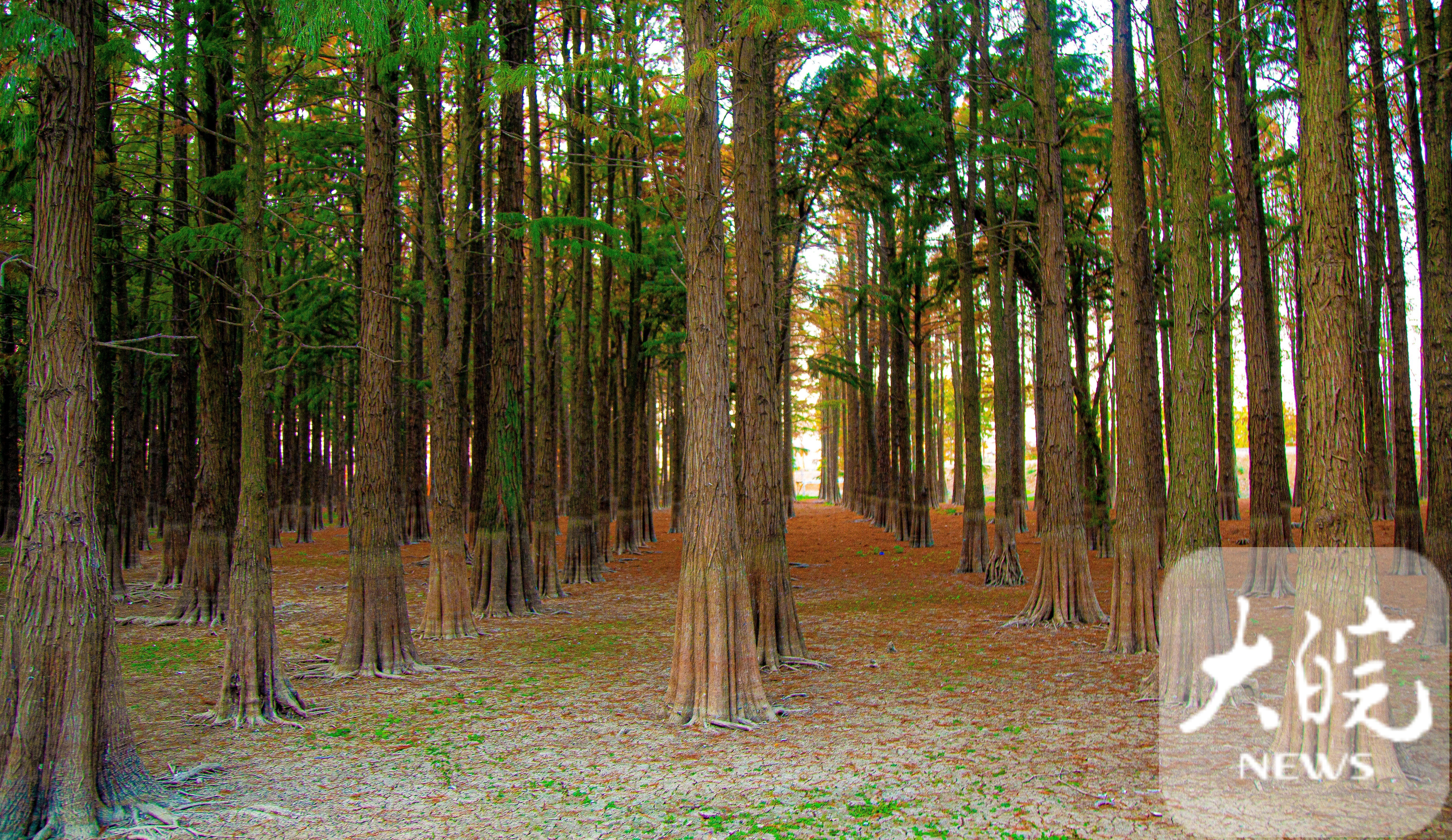 大皖新闻讯 万株池杉“沐浴”在阳光下,在安徽省合肥市庐江县柯坦镇的大汉塘,池杉如火如霞,构成一幅五彩斑斓的油画。
