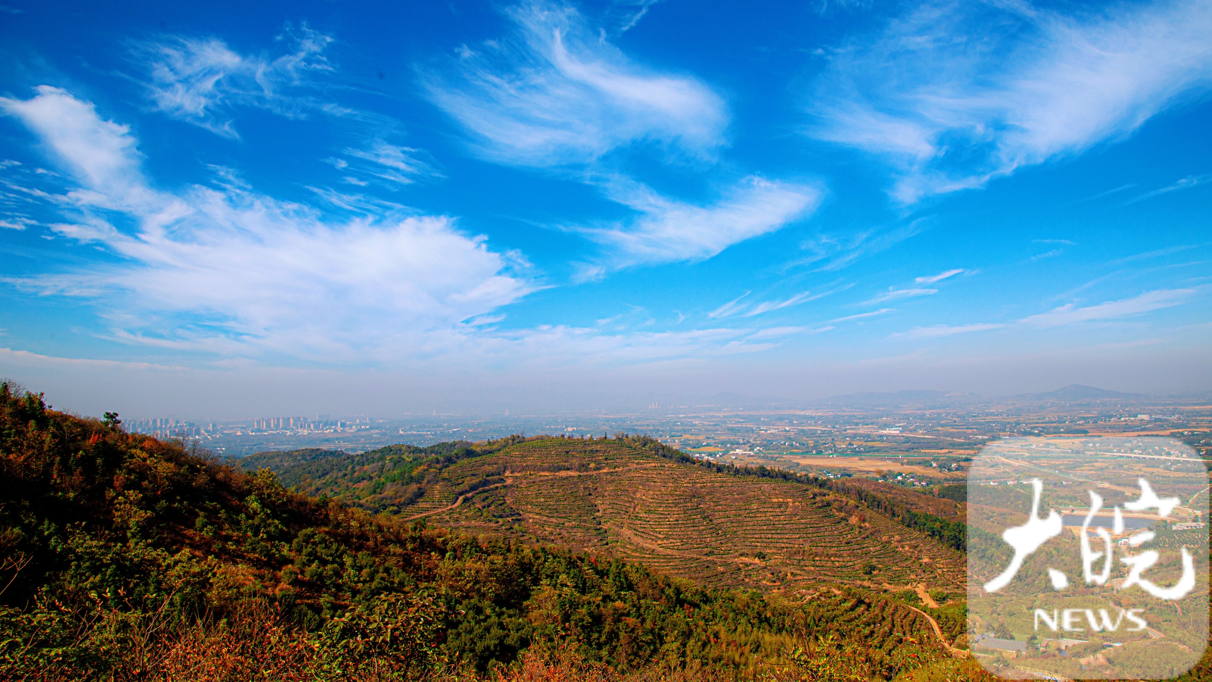 位于庐江县的冶父山,有“江北小九华”之称,为安徽省十大名山之一、国家AAAA级旅游景区、国家森林公园、中国最具文化价值(遗产)旅游目的地。10月20日,晴空万里,冶父山群峰耸拔,盘旋而上,俯瞰青山常在,远处高楼林立,美不胜收,一幅幅生态美景入画中。