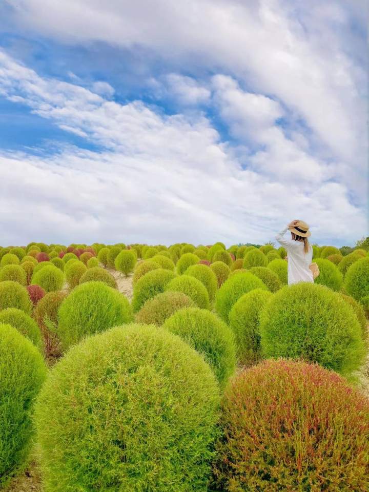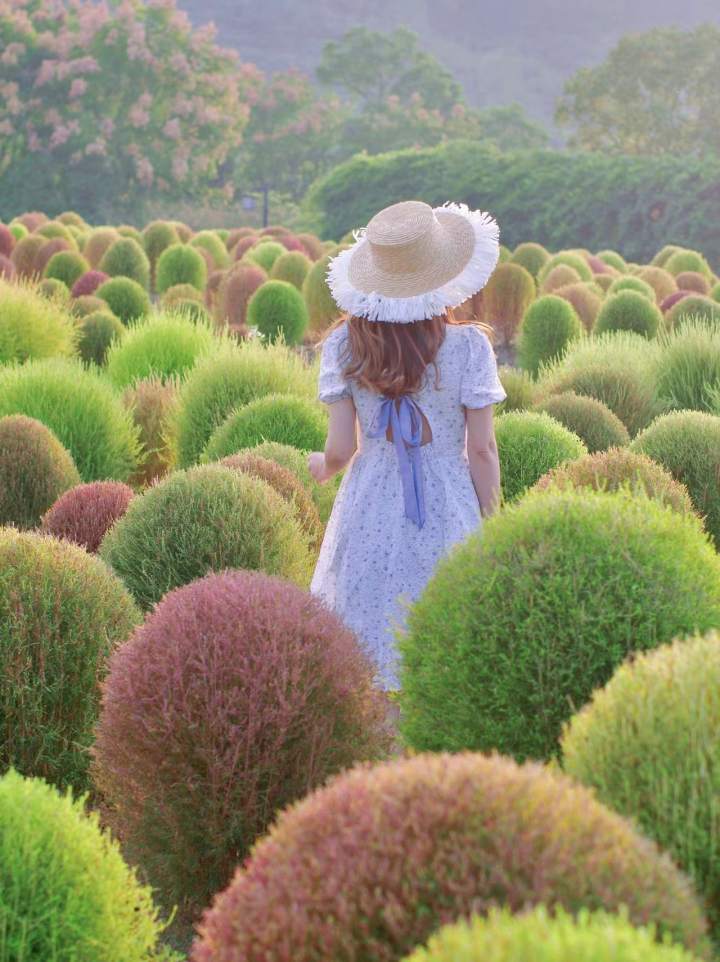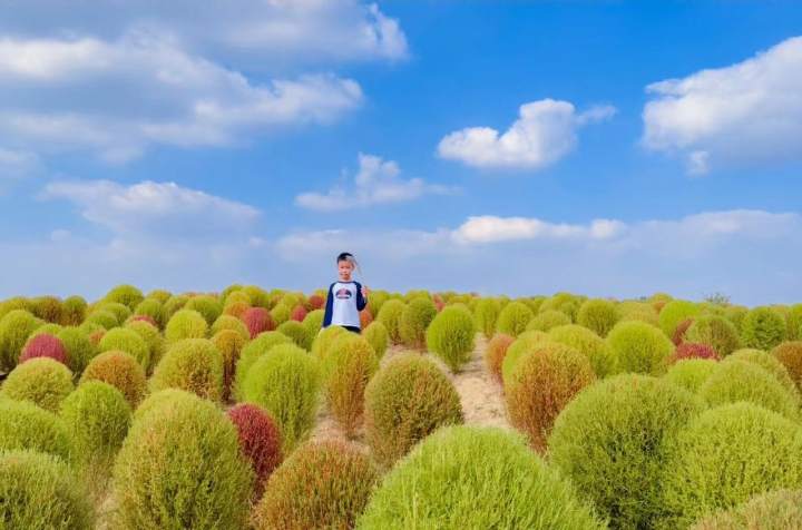 图片中那么美的其实叫地肤草,也就是农村的扫帚菜,从春天的嫩绿到秋天的火红,外形圆滚滚的,很呆萌。