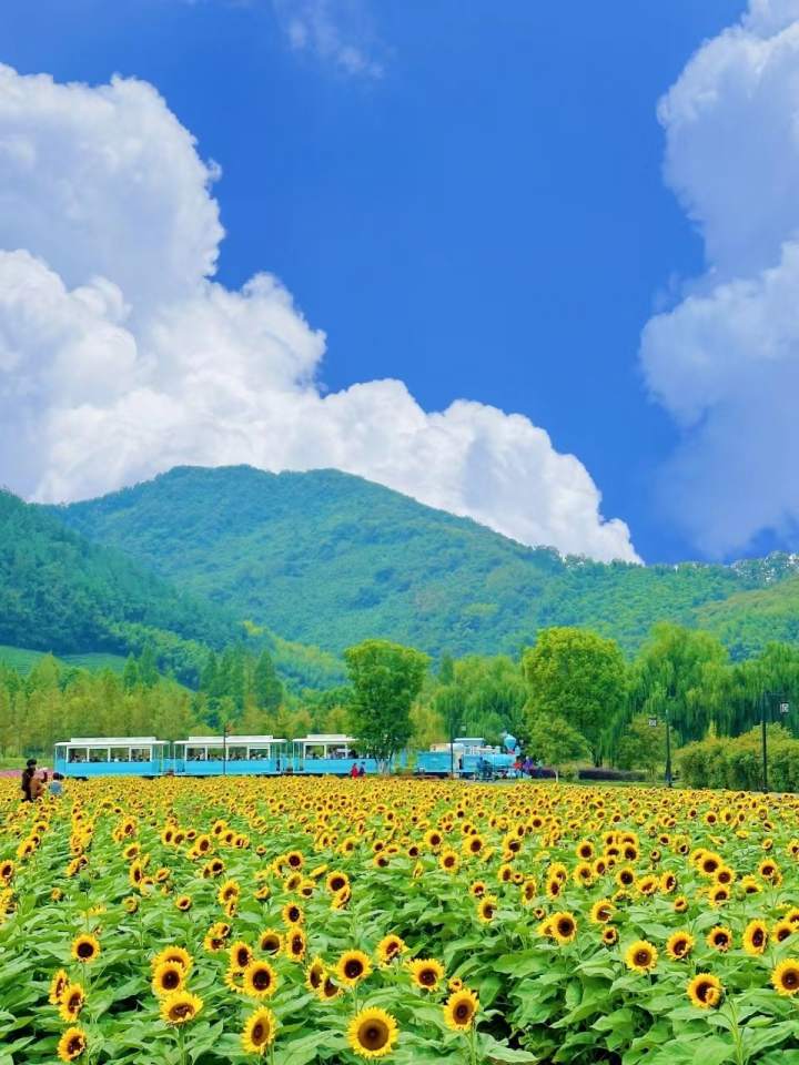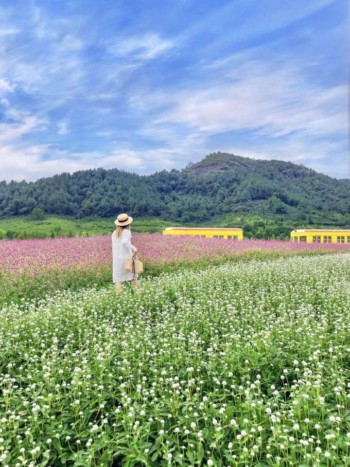 目前径山花海开始进入盛花期,呆萌的地肤草、橙色的硫华菊、黄色的向日葵、绿色的地肤草、紫红的千日红、白色的香水百合……姹紫嫣红的花海,都有着属于它们独有的花语。