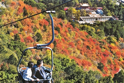 绪银平介绍,本周日霜降节气过后,红叶变色速度也将加快。香山公园还将连续三个周末迎来游园高峰,游客大多集中在公园中路。这条游览线路长度适中,体力消耗也比较合适,游客不仅可以远观山上的红叶,还能欣赏昭庙、见心斋、致远斋、玉华岫、香雾窟等建筑,也可以不必登顶,在最短时间欣赏到香山公园的精华景观。