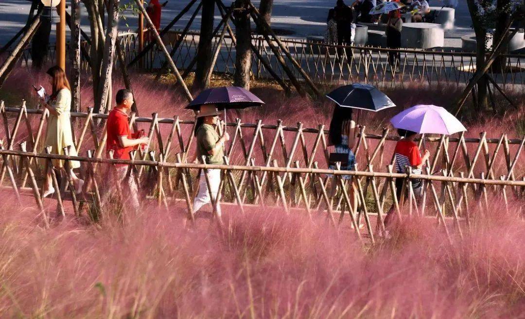 “十里轮蹄尘不断,几多粉黛花无色”,在南宋丞相京镗的诗词里,“粉黛”仿佛就是美艳动人的代名词。此刻,郧阳解放军青年林盛开的粉黛乱子草就是这样的存在。你看,这粉黛乱子草形态轻柔得像烟雾一样梦幻行走在花间景观步道,高低有序的粉黛乱子草在身边萦绕,仿佛沉浸于粉色云海。