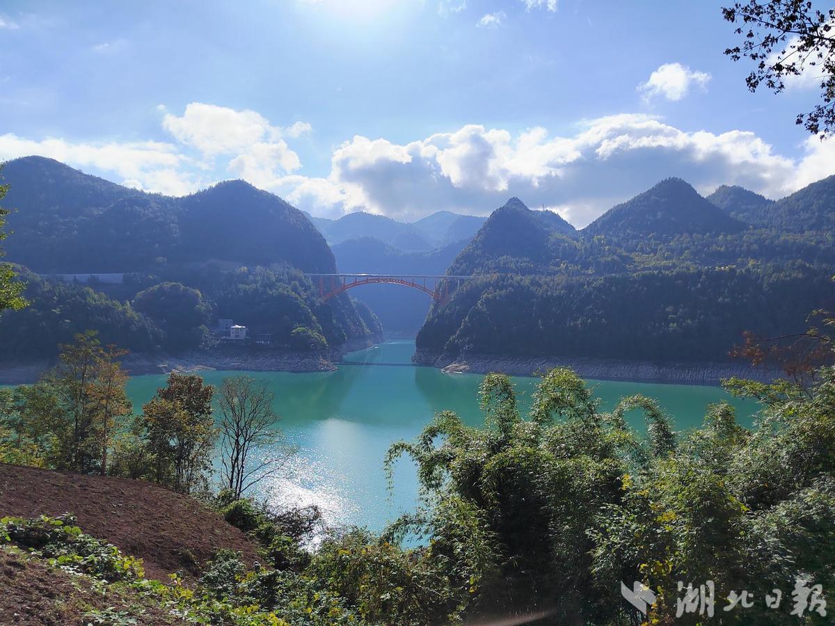 湖北日报客户端讯(咸丰频道通讯员郭胜芳)深秋晴日,阳光温热,蓝天白云下,青山绿水间,朝阳大桥横亘于黄虎坪与峡口坝之间的深山峡谷中,蔚为壮观。凭栏远眺,唐崖河绿如翡翠,逶迤远去;群山连绵,令人心旷神怡。
